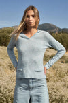 Light Blue Long Sleeve Faux Pocket V-Neck With Collar Top