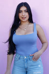 Square Neck Basic Essential Stretchy Bodysuit Tank TopVendor:Le Lis