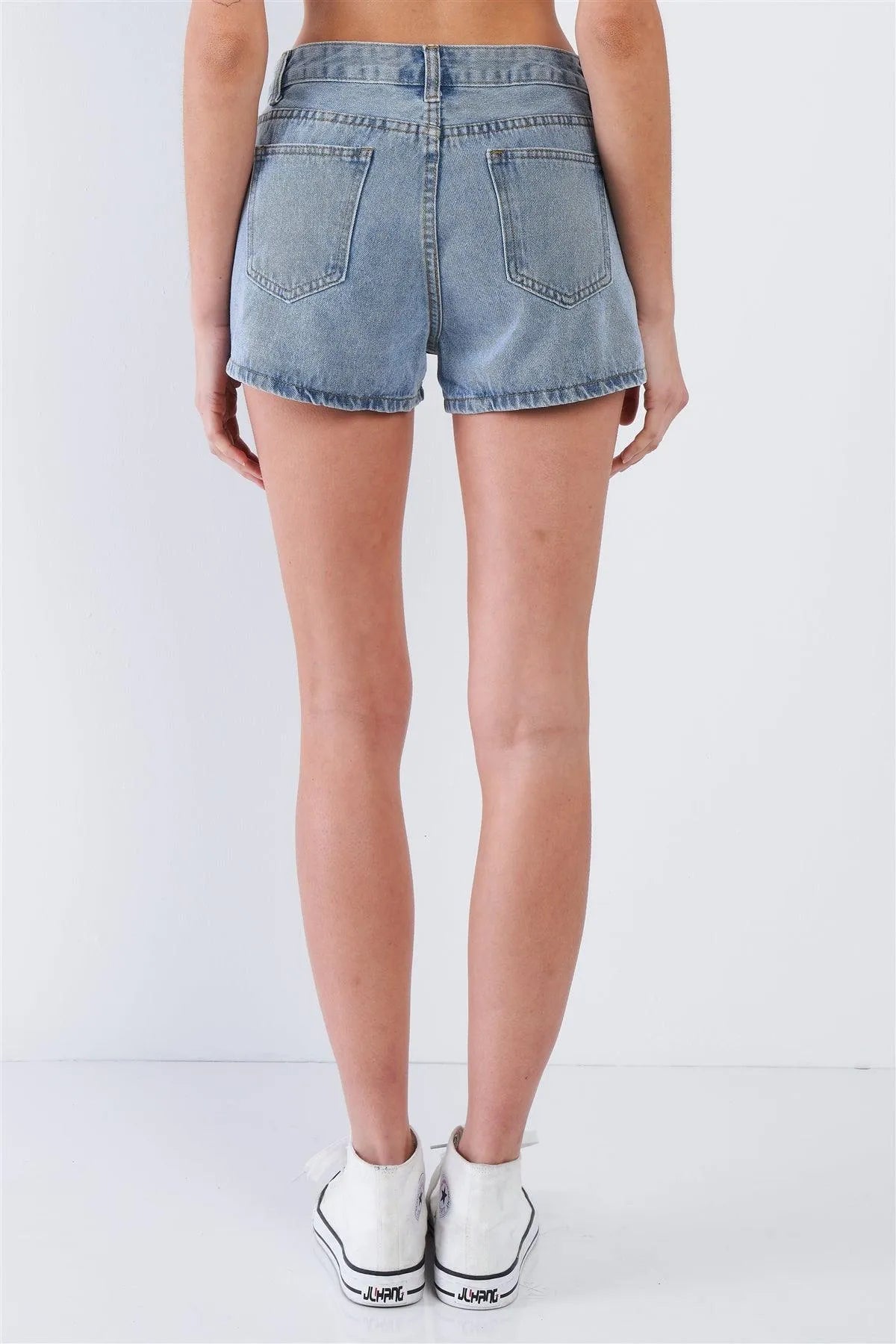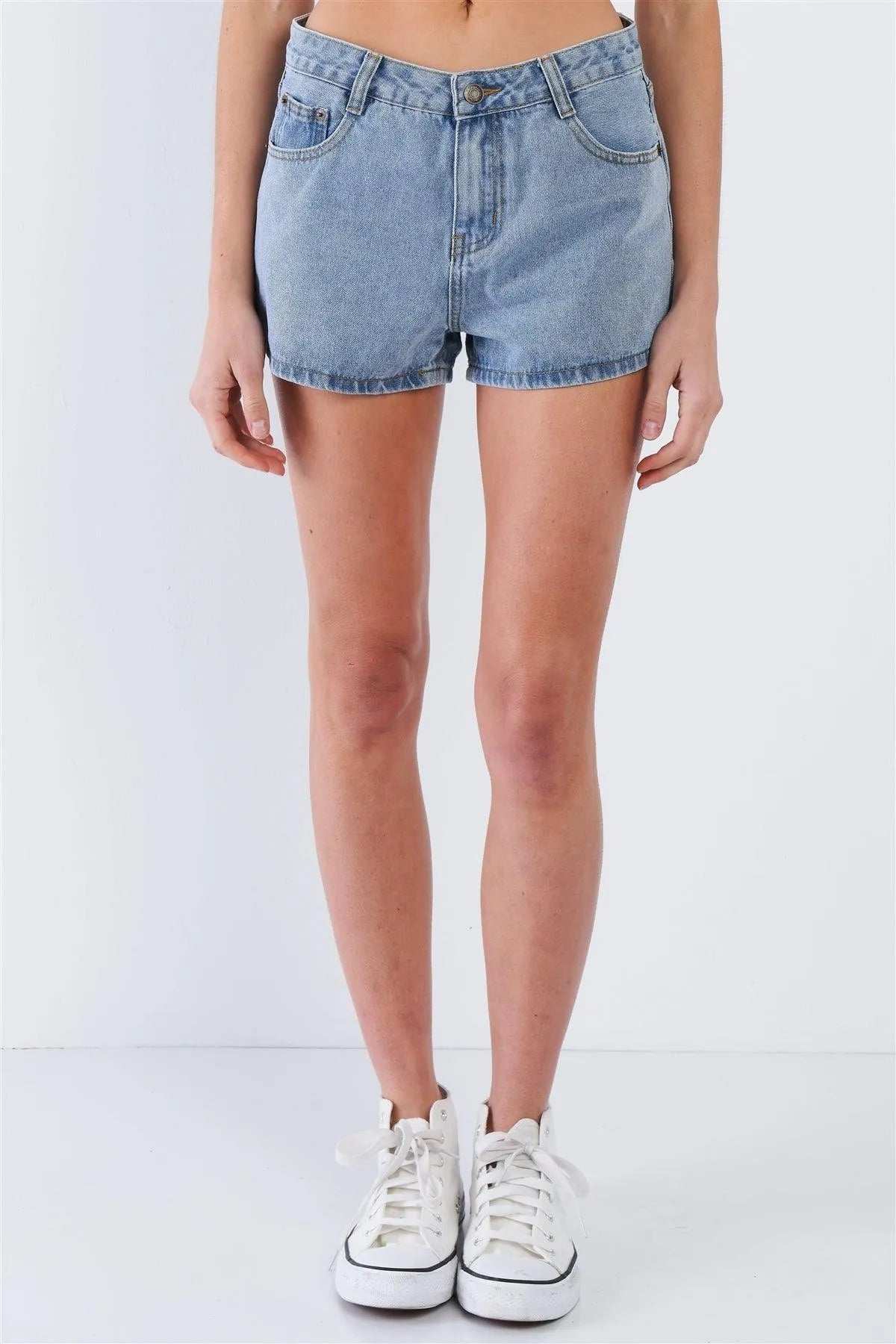 Light Blue Washed Denim Mini Casual Jean Shorts /2-2