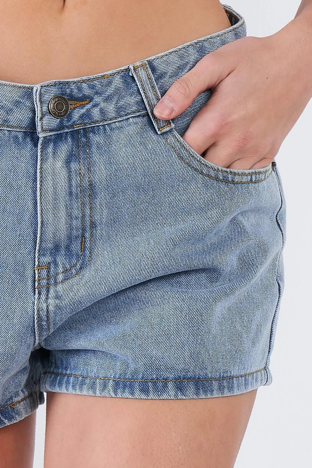 Brown Denim Mid Waist Front Pocket ShortsVendor:Le Lis