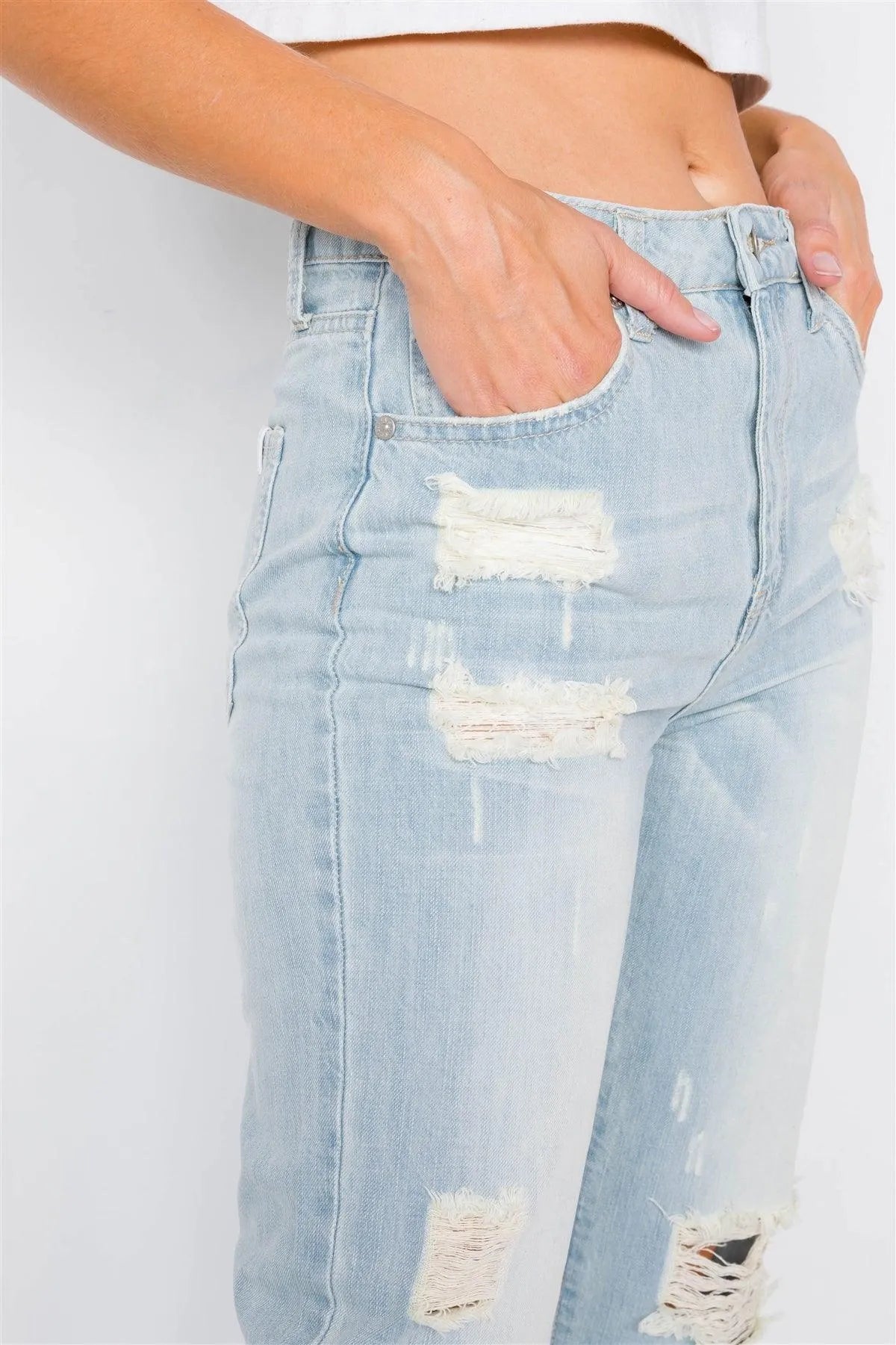 Light Denim Distressed Wide Leg Boyfriend Jeans /1-2-1