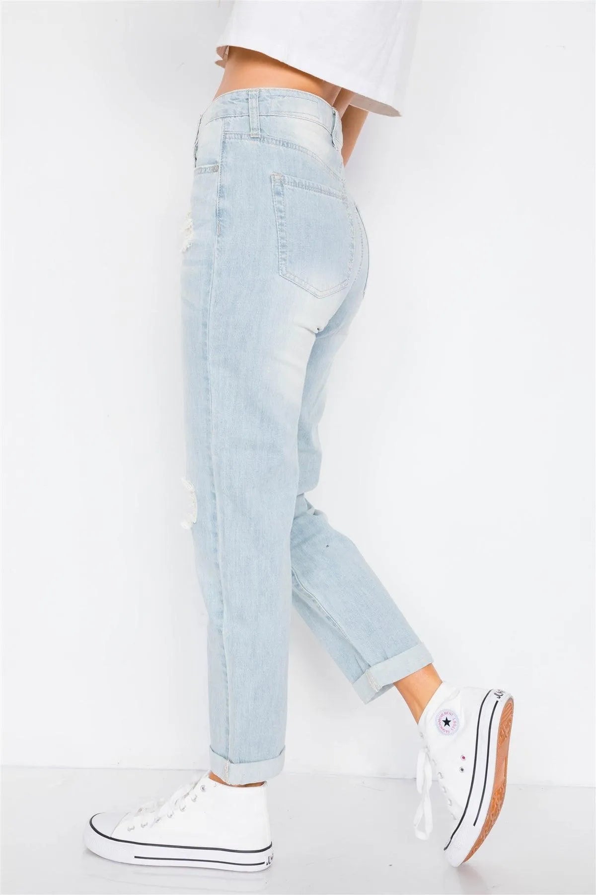 Cotton High Waist Distressed Washed JeansVendor:Le Lis