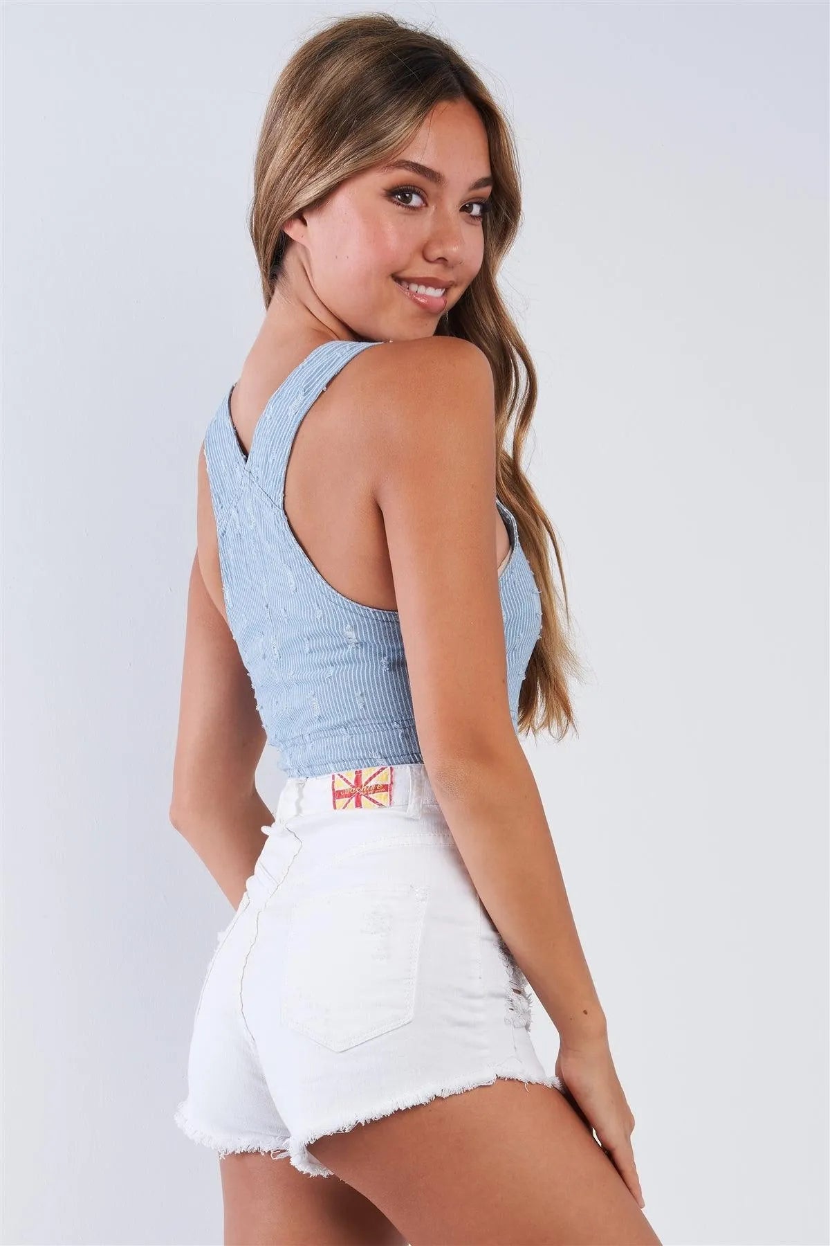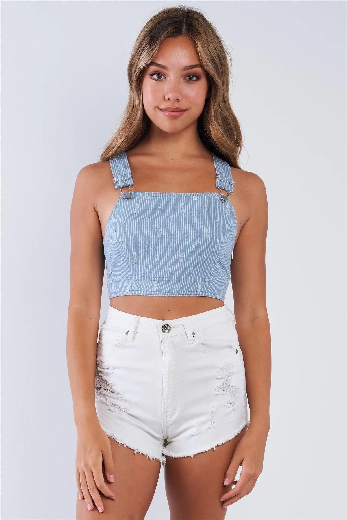 Light Denim White Striped Overall Cropped Top /3-2-1