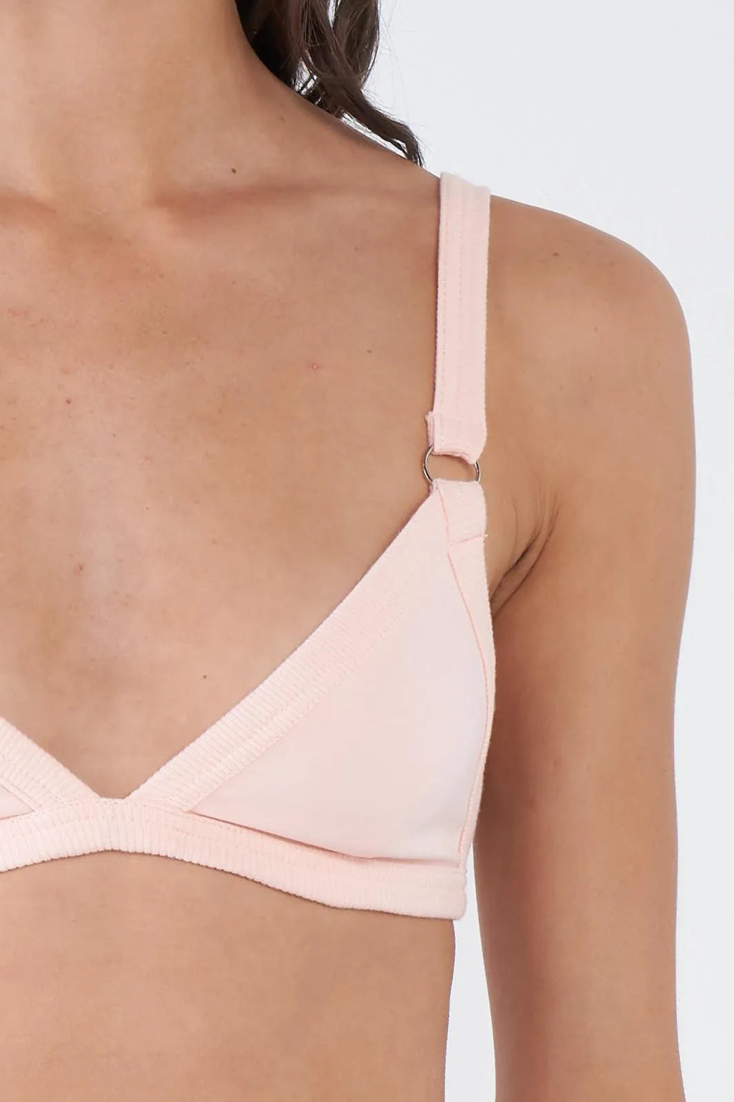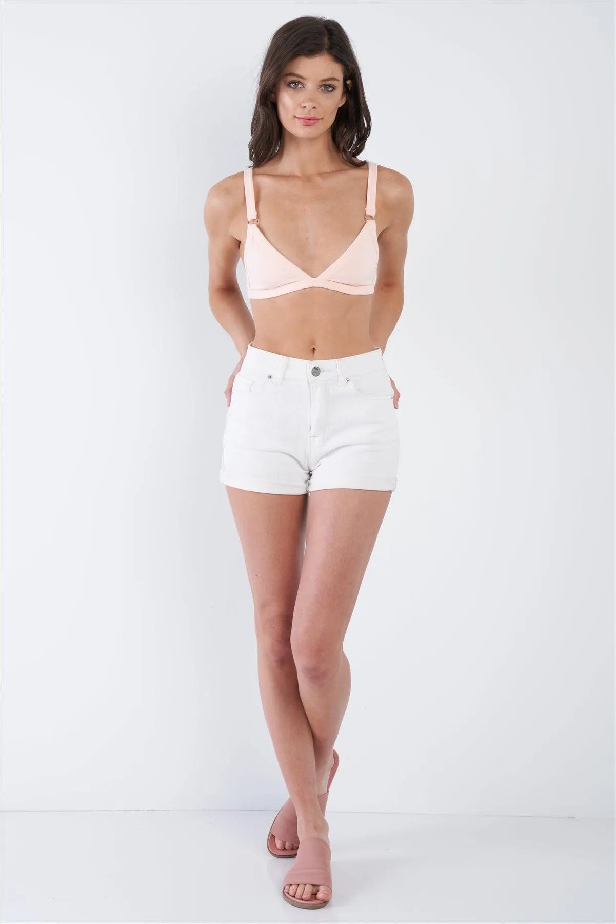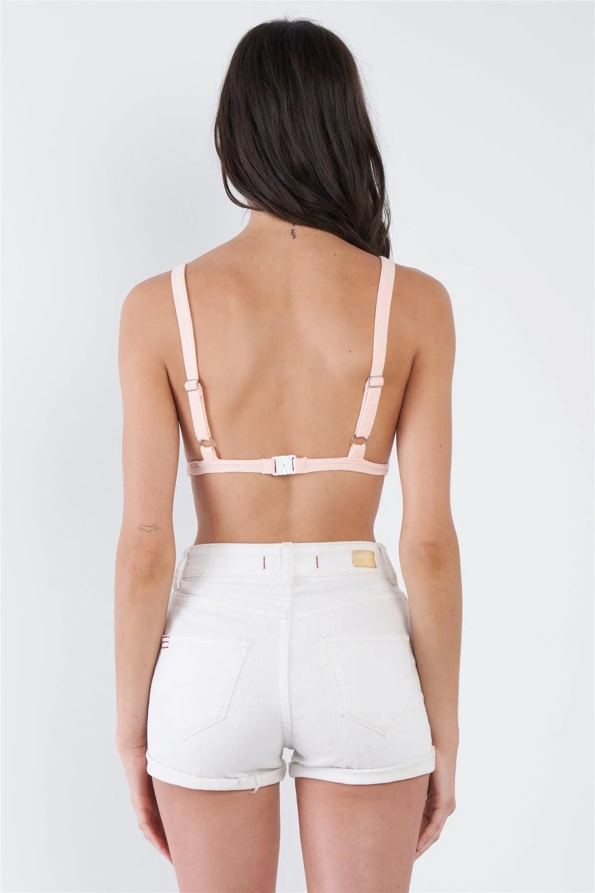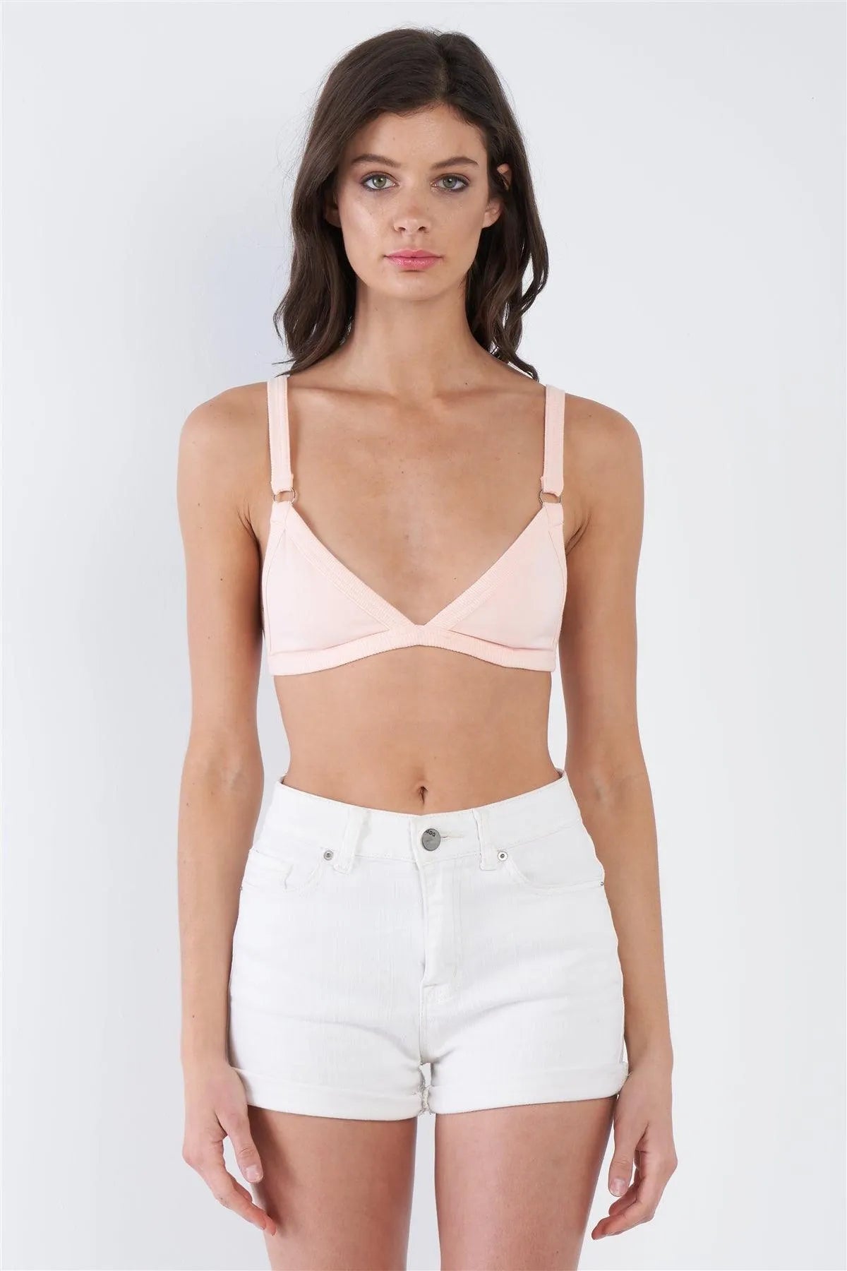 Light Peach Pink Cotton Bold Trim Clasp Back Bra /3-2-1