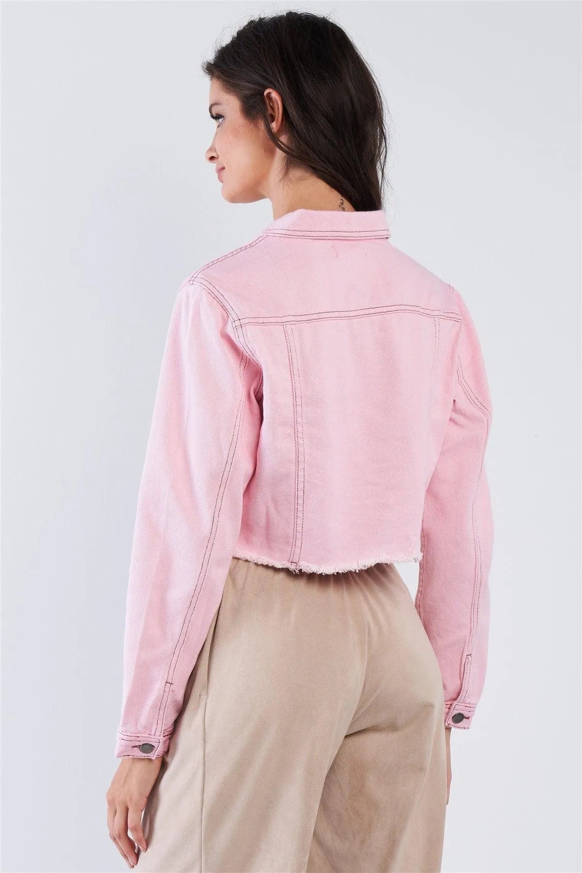 Light Pink Denim Cropped Collared Botton Up Jacket