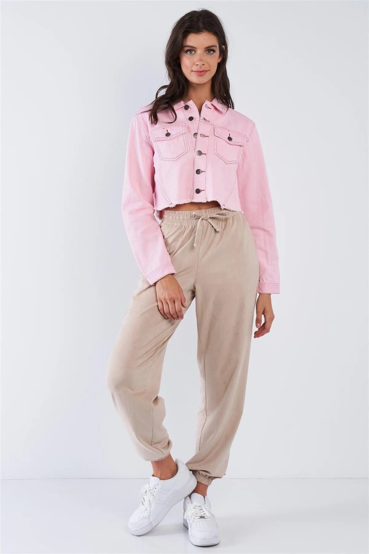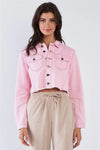 Light Pink Denim Cropped Collared Botton Up Jacket /2-2-2