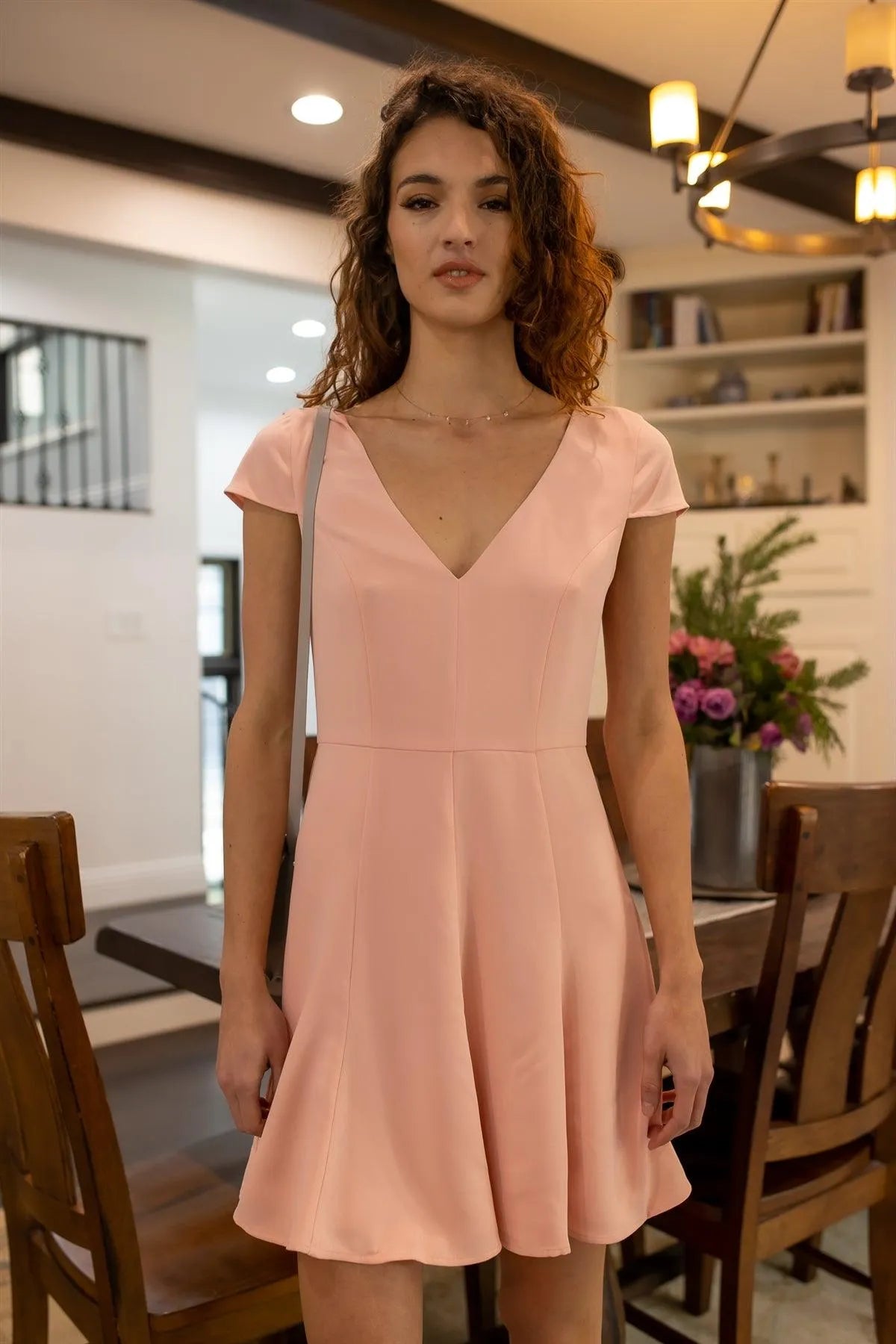 "Ballerina" Light Pink V-Neck Fitted Flare Mini Dress /4-3