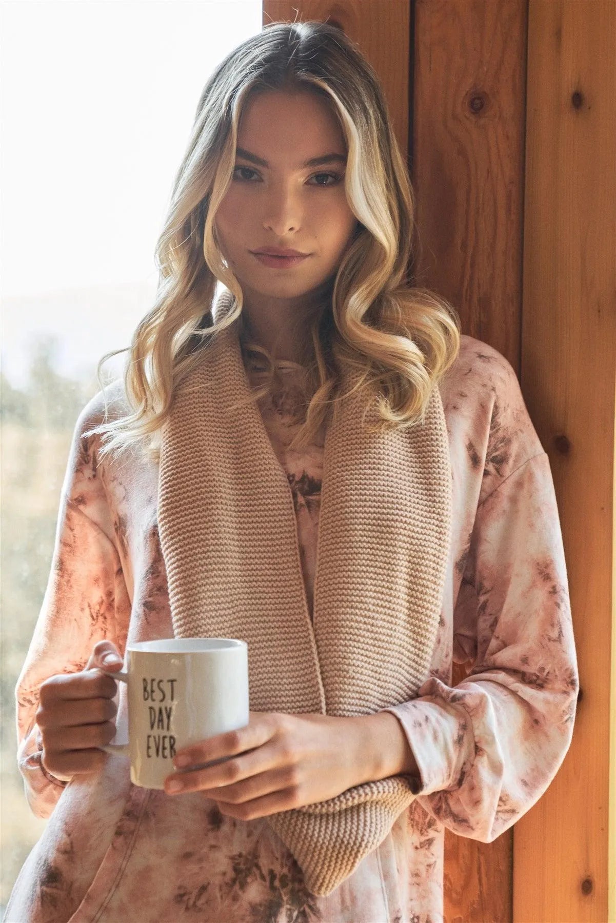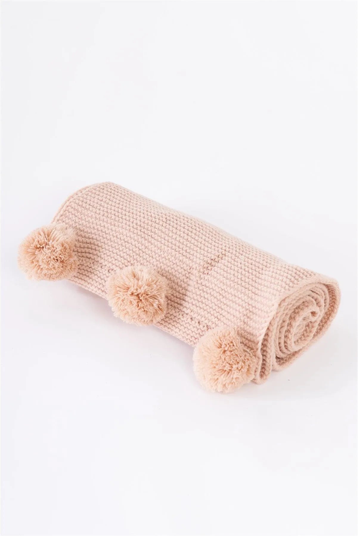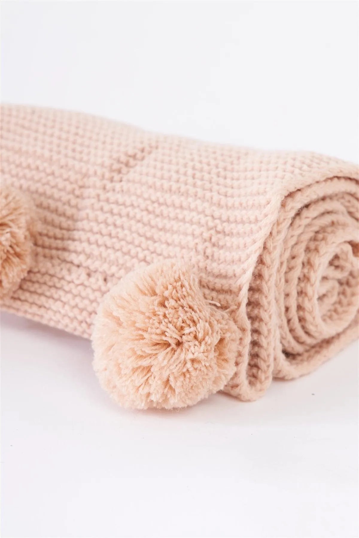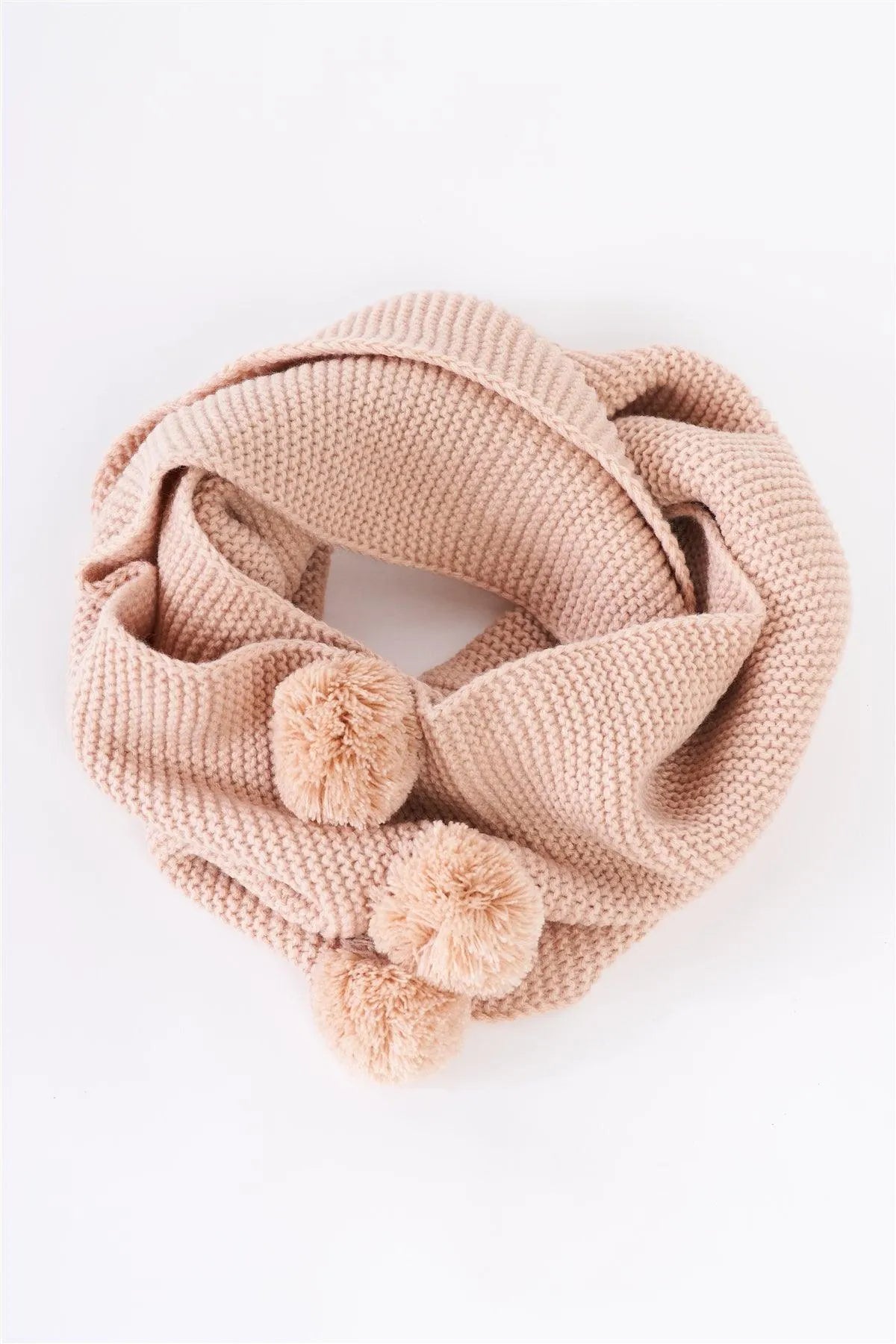 Light Pink Woven Knit Pompom Trim Detail Loop Scarf /3 Pieces