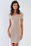 Light Taupe Short Sleeve Bandage Body-con Criss Cross Back Mini Dress /3-3
