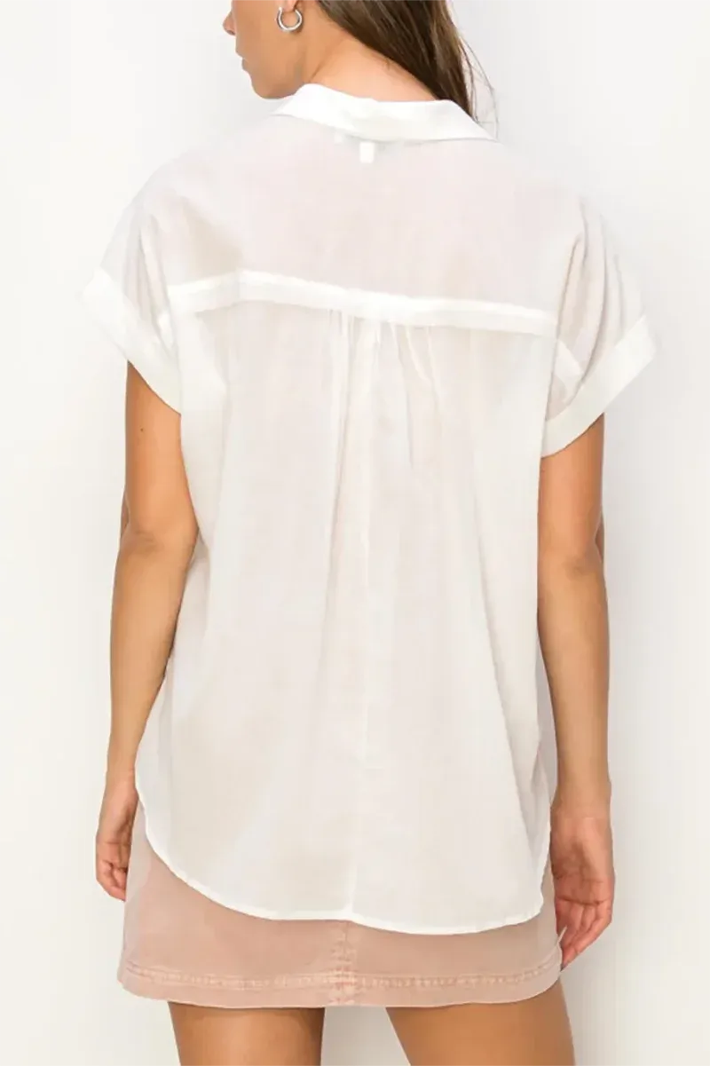 Lightweight Sheer Chest Pocket Button-Down Short Sleeve Blouse