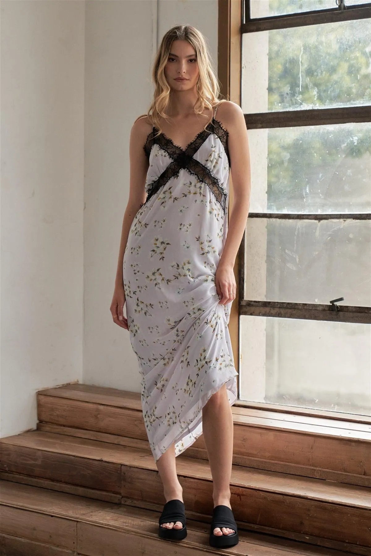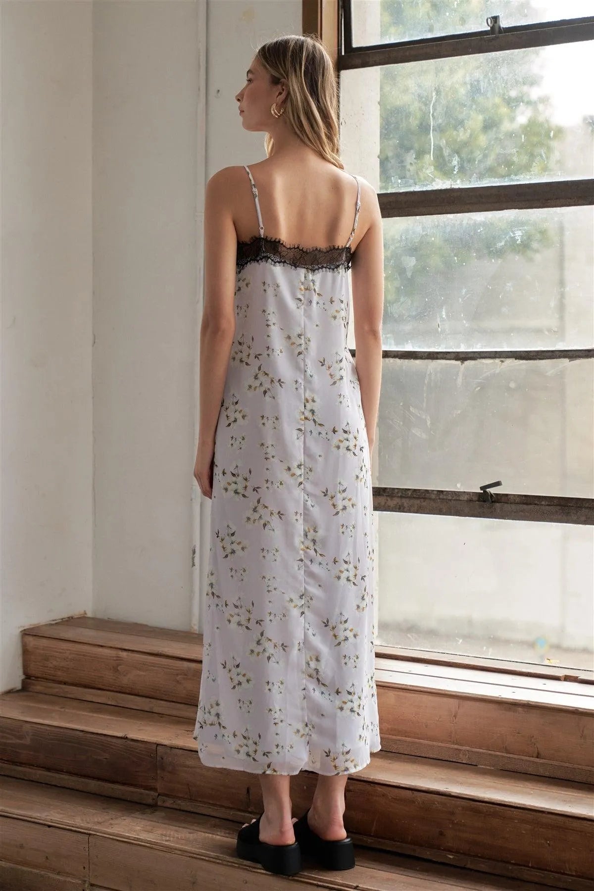 Lilac Multi Floral Print Sleeveless Lace Trim Slip Maxi Dress