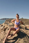 🖤Item Features: Lilac, solid color, satin effect, round neckline, single-cross strap open back, non-adjustable shoulder straps, high rise cheeky bottom with elasticized waistline, lined, stretchy, sporty, festival wear, cute, color pop, comfy