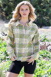 Lime Cotton & Linen Blend Textured Plaid Shirt Top /2-2-2