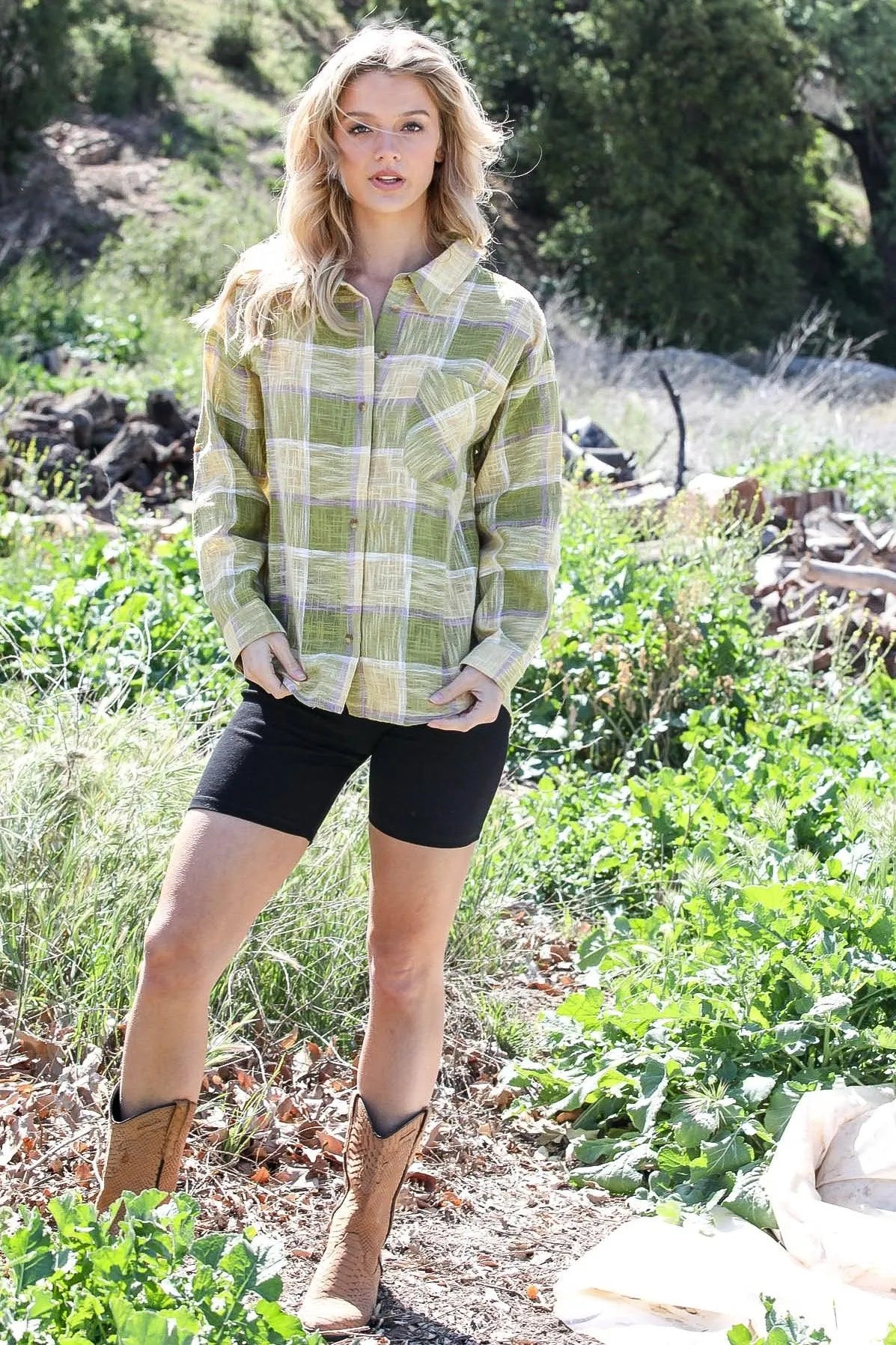🖤 Item Features: Lime, cotton & linen blend material, textured, plaid, button up front closure, collared, long sleeves with button closure cuffs, dropped shoulders, unlined, non-sheer, non-stretchy, breathable, trendy, stylish, cute, summer vibe, boho style
