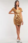 Liquid Gold Deep Plunge V-Neck Short Sleeve Wrap Gathered Side Detail Mini Dress /1-1-2-1