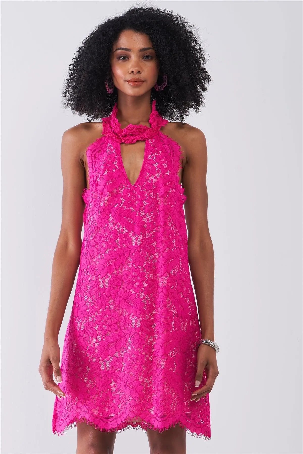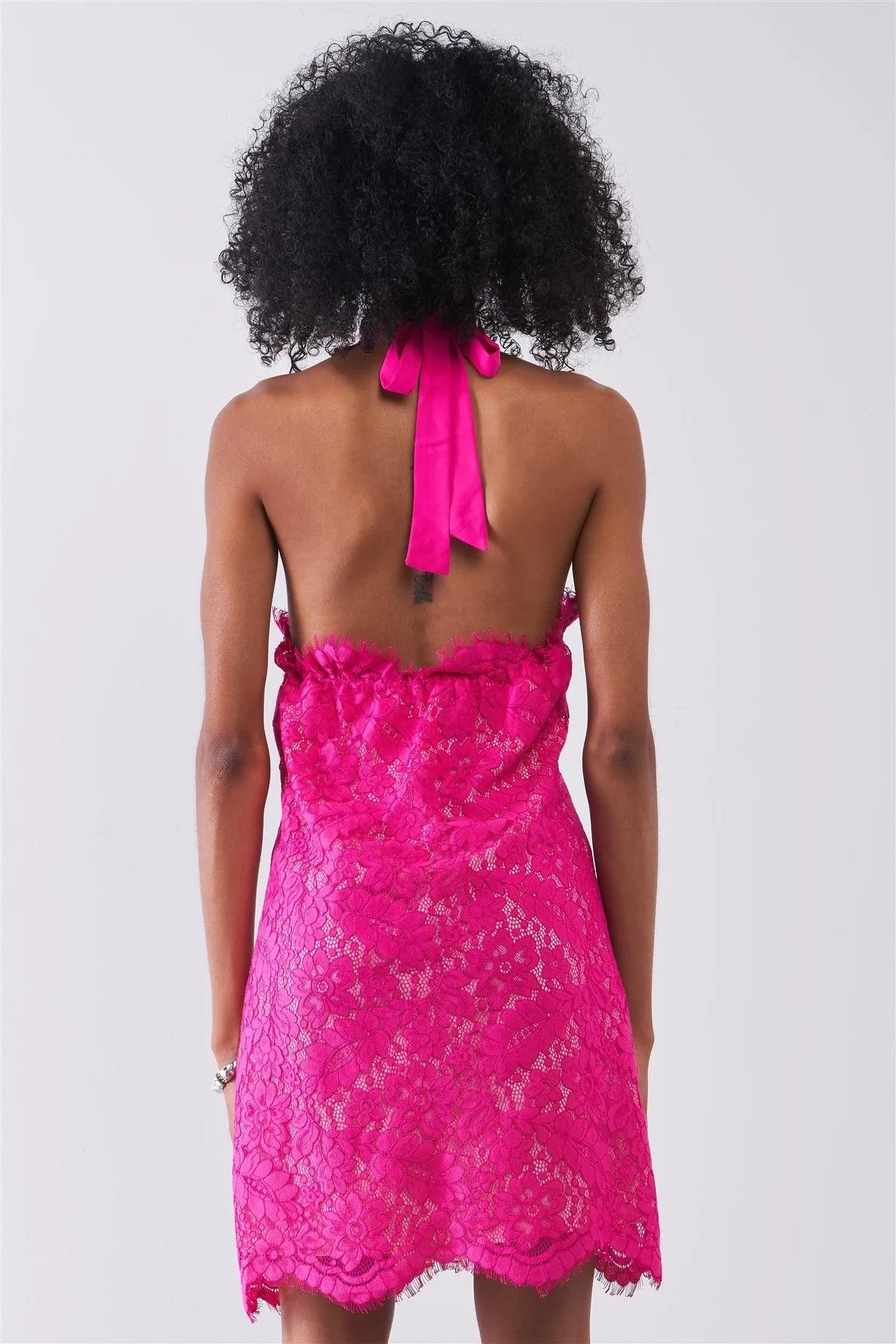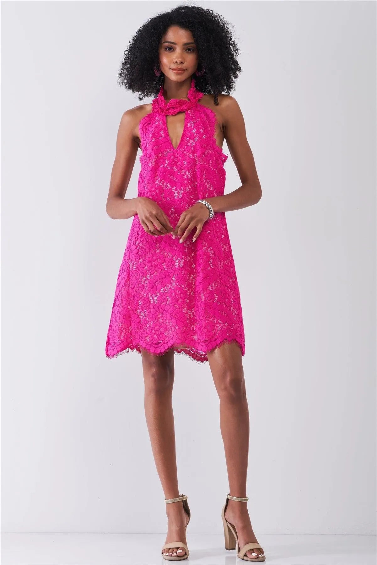 Magenta Crochet Embroidery Halter Neck Sleeveless Cut-Out Detail Mini Dress /1-2-1