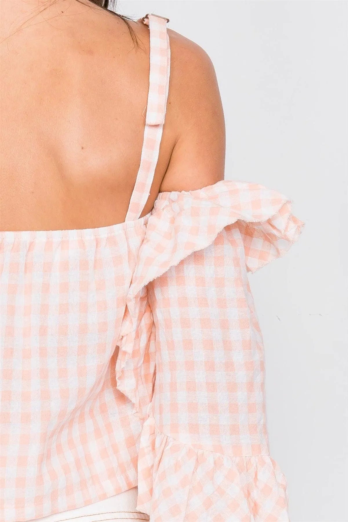 Malibu Peach & White Cotton Checkered One Shoulder Top /2-2-1