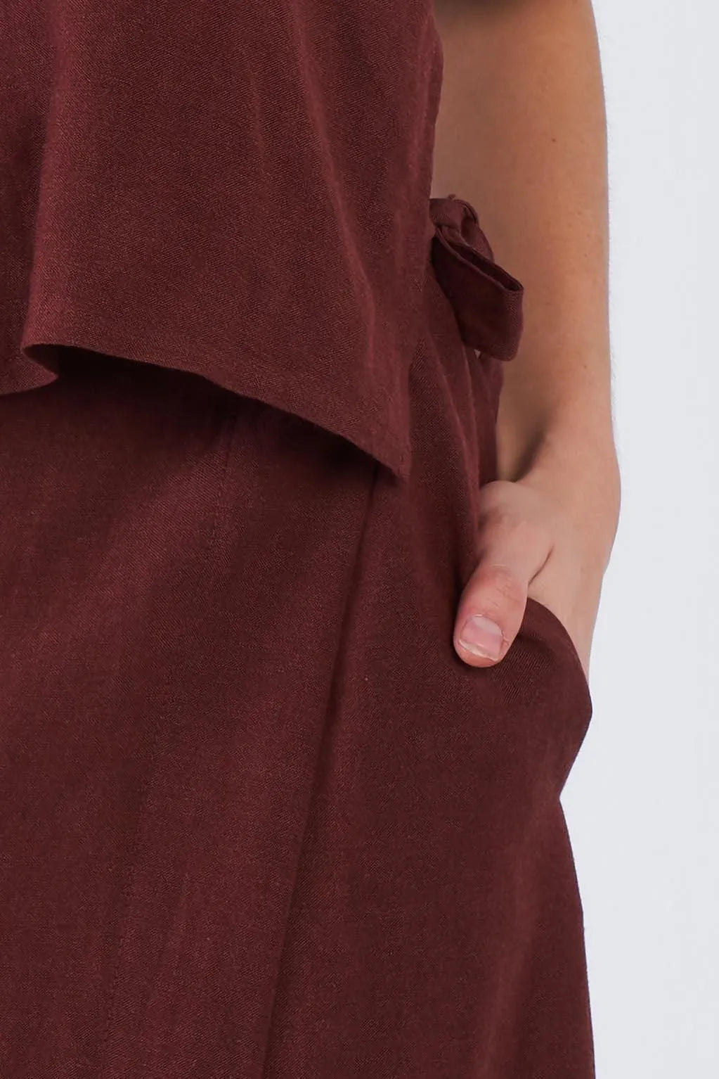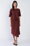 Maroon Brown Center Cut Out V-Neck Midi Wrap Dress
