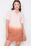 Mauve Dip Tie Dye Lace Up Mini Shift Dress /2-2-2