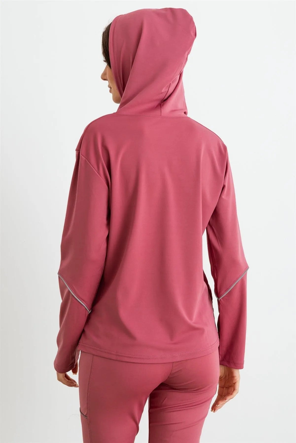 🖤 Item Features: Mauve, cotton blend, long sleeves, two pockets, hood with adjustable drawstring, reflective stripes, front zip-up closure jacket, elasticized two pockets leggings, stretchy, not see through, unlined, sporty. cool, cute