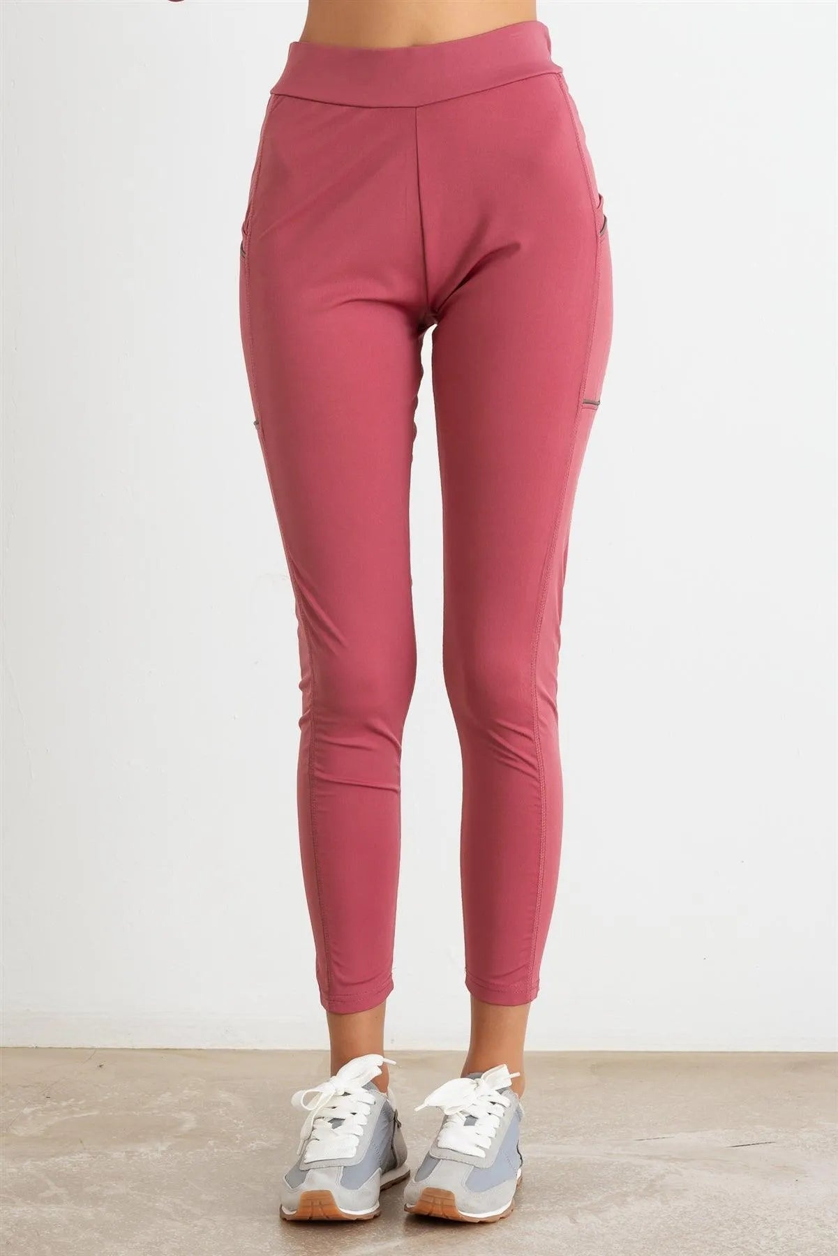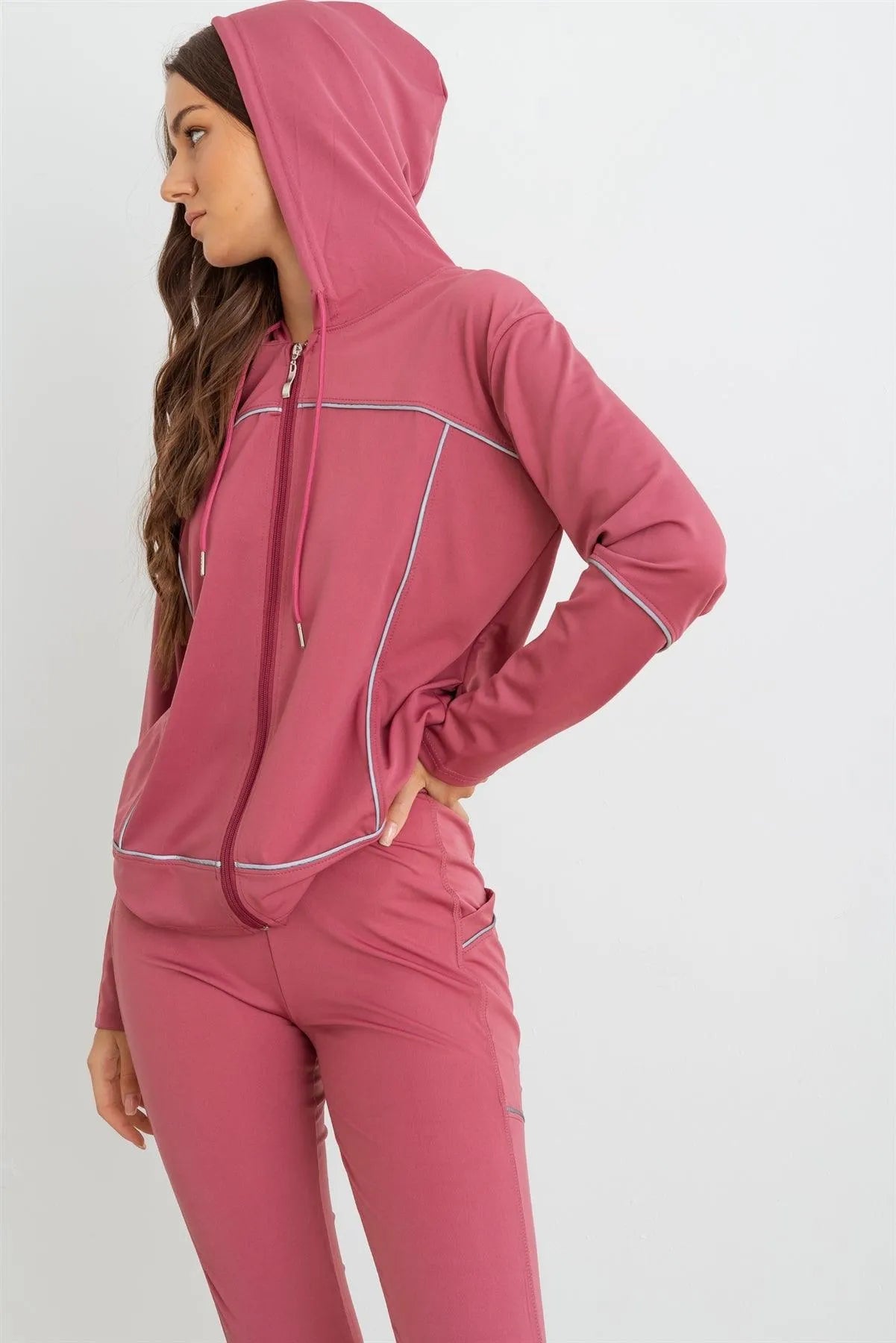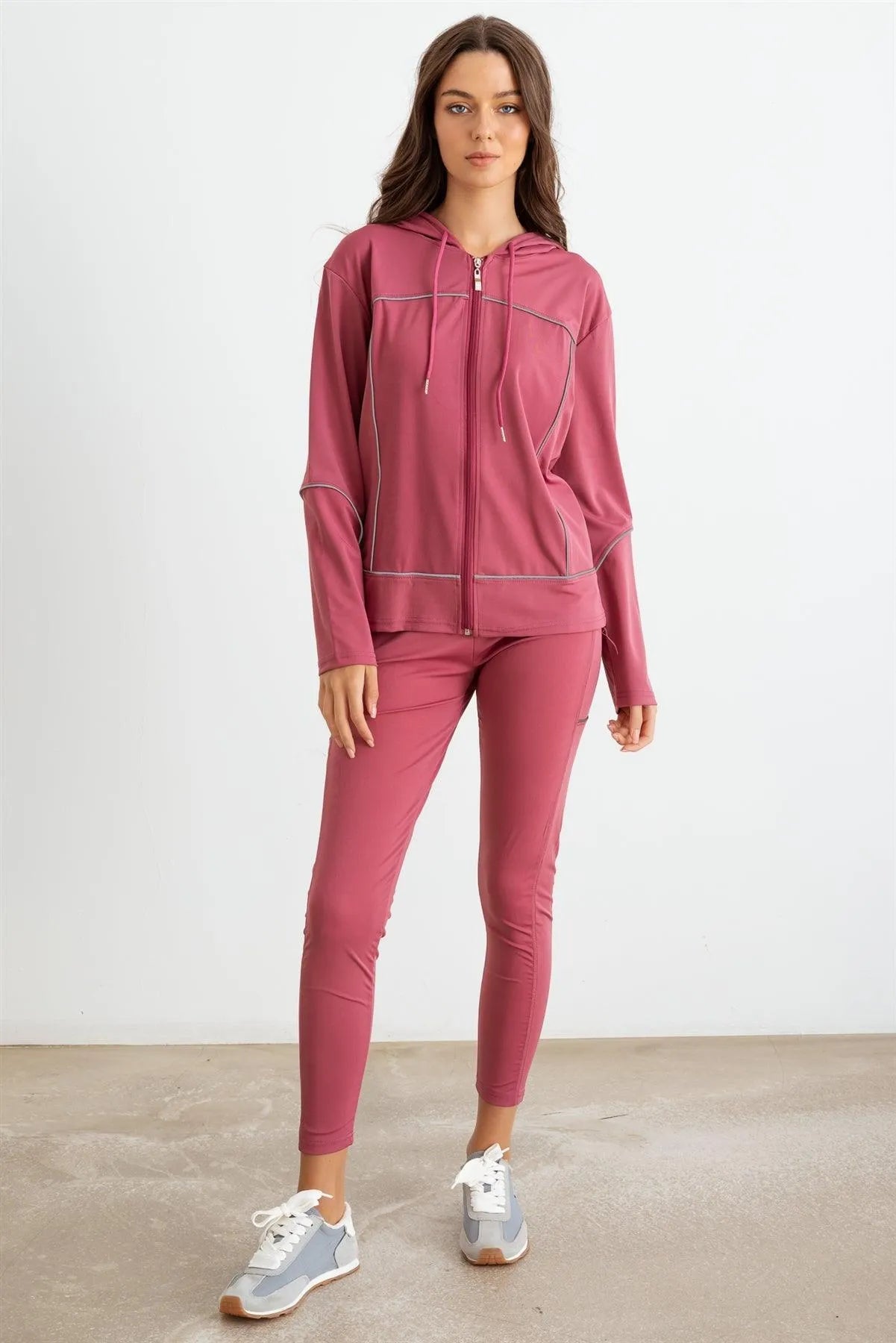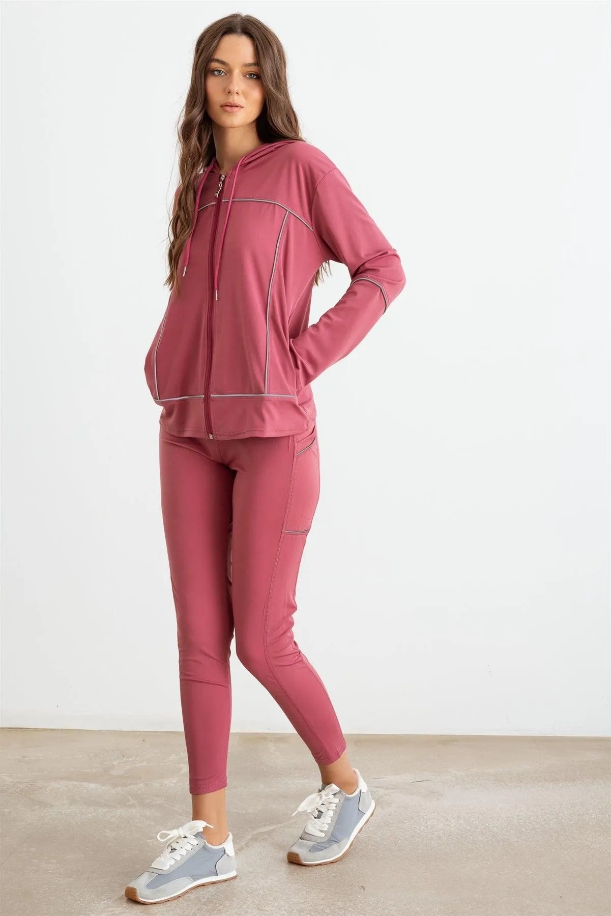 Mauve Hooded Zip-Up Jacket Luon & Two Pocket Leggings Set /3-3