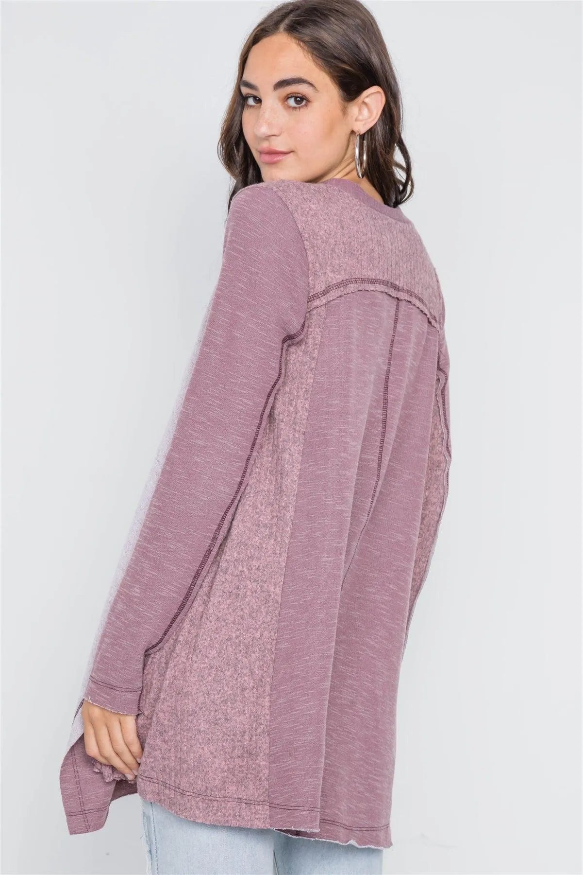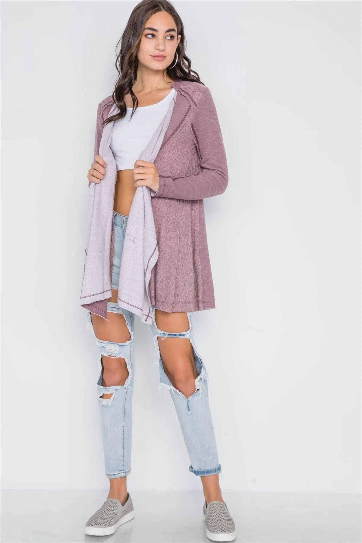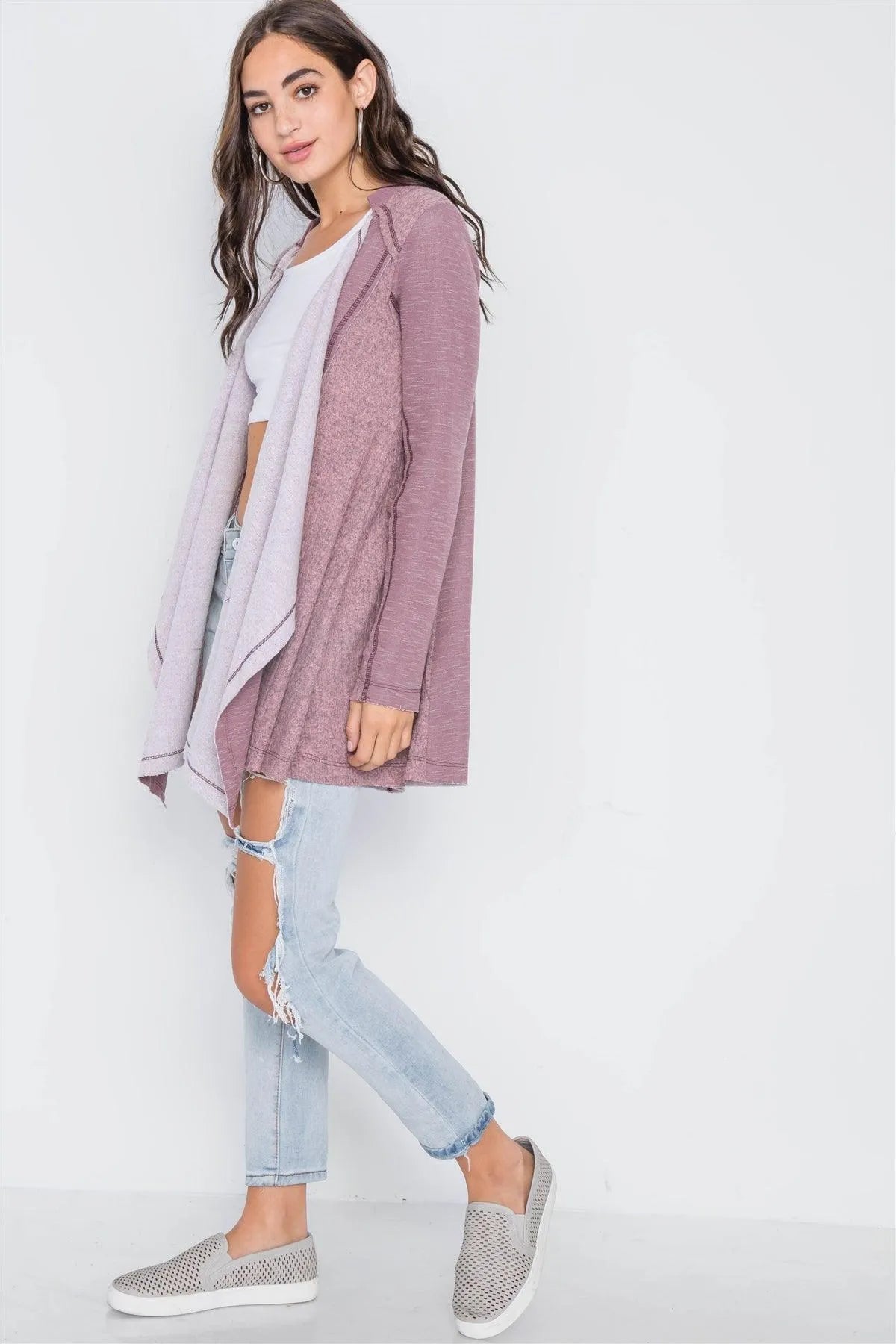 Mauve Knit Draped Front Long Sleeve Cardigan /2-2-3