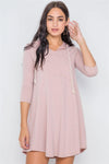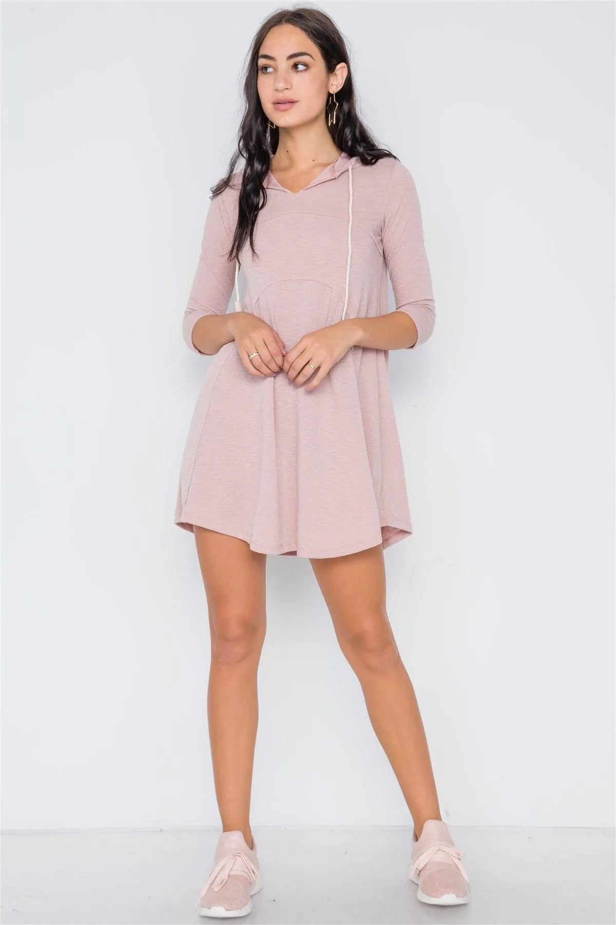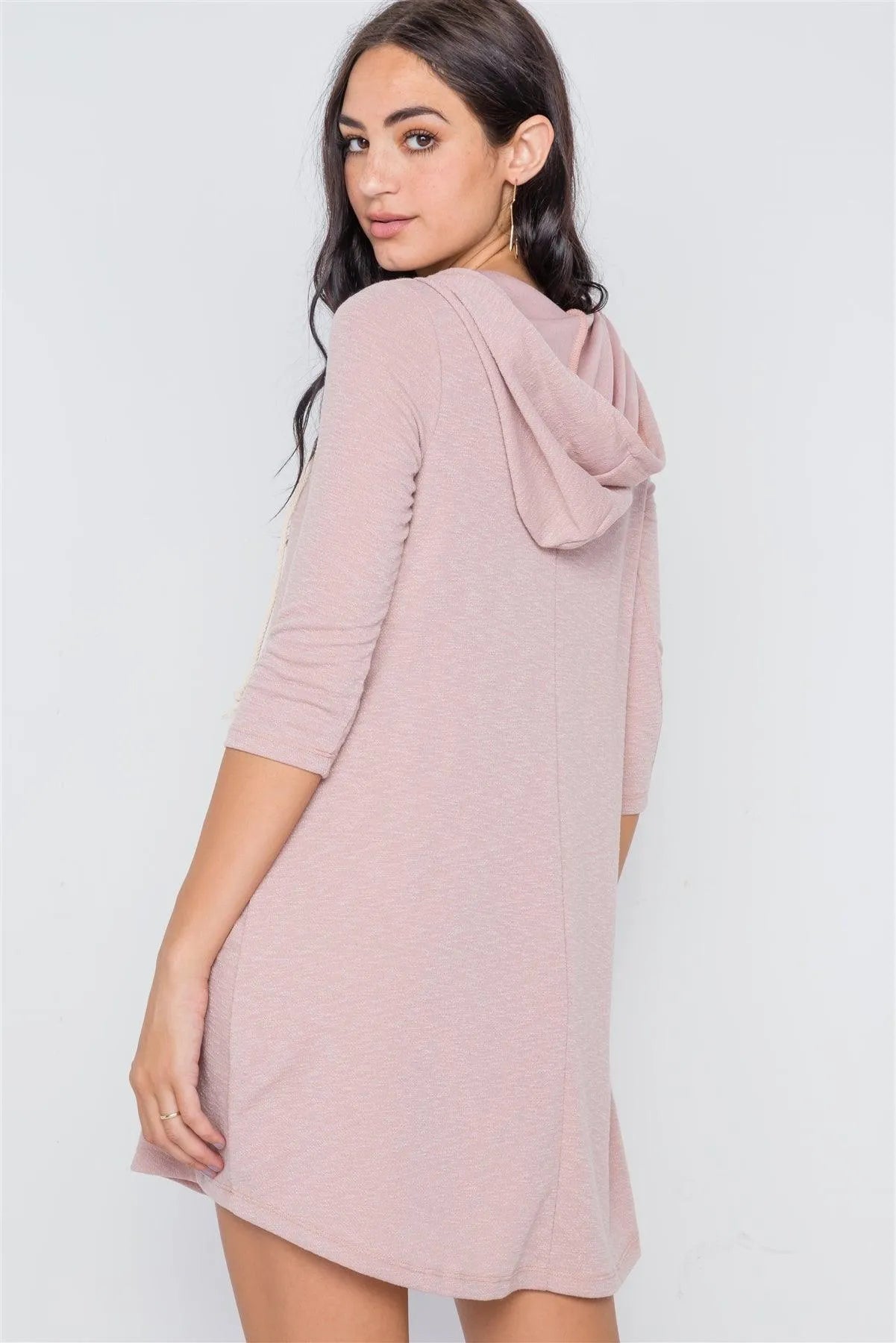 Mauve 3/4 Sleeve Knit Hooded Mini Dress /2-2-2