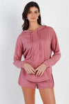 Mauve Racer Back Detail Long Sleeve Hooded Top & Short Set /2-2-2