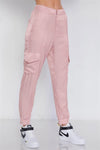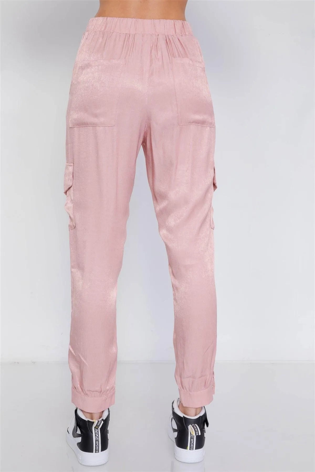 Mauve Satin Cargo Cinched Ankle Relaxed Fit Jogger /3-2-1