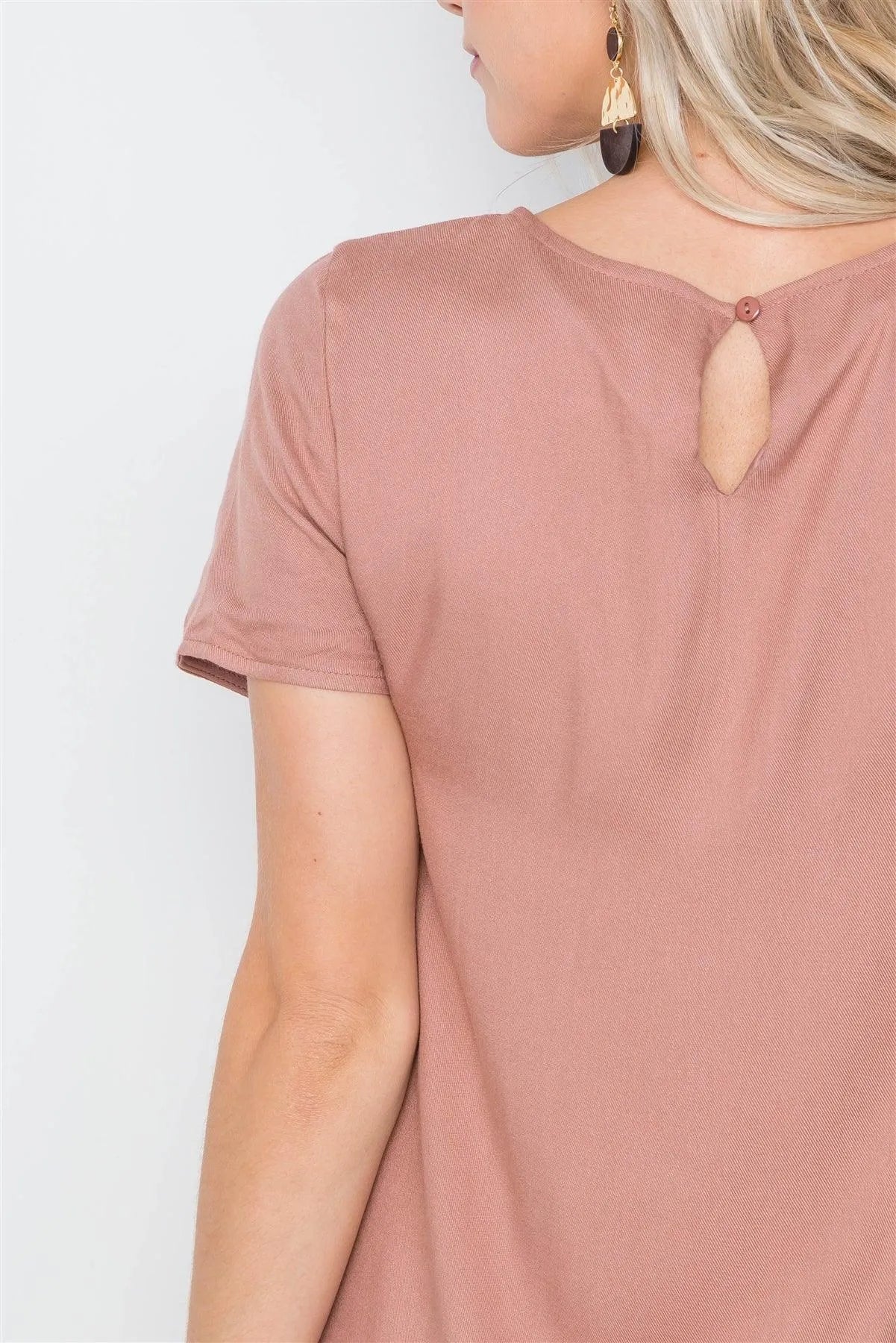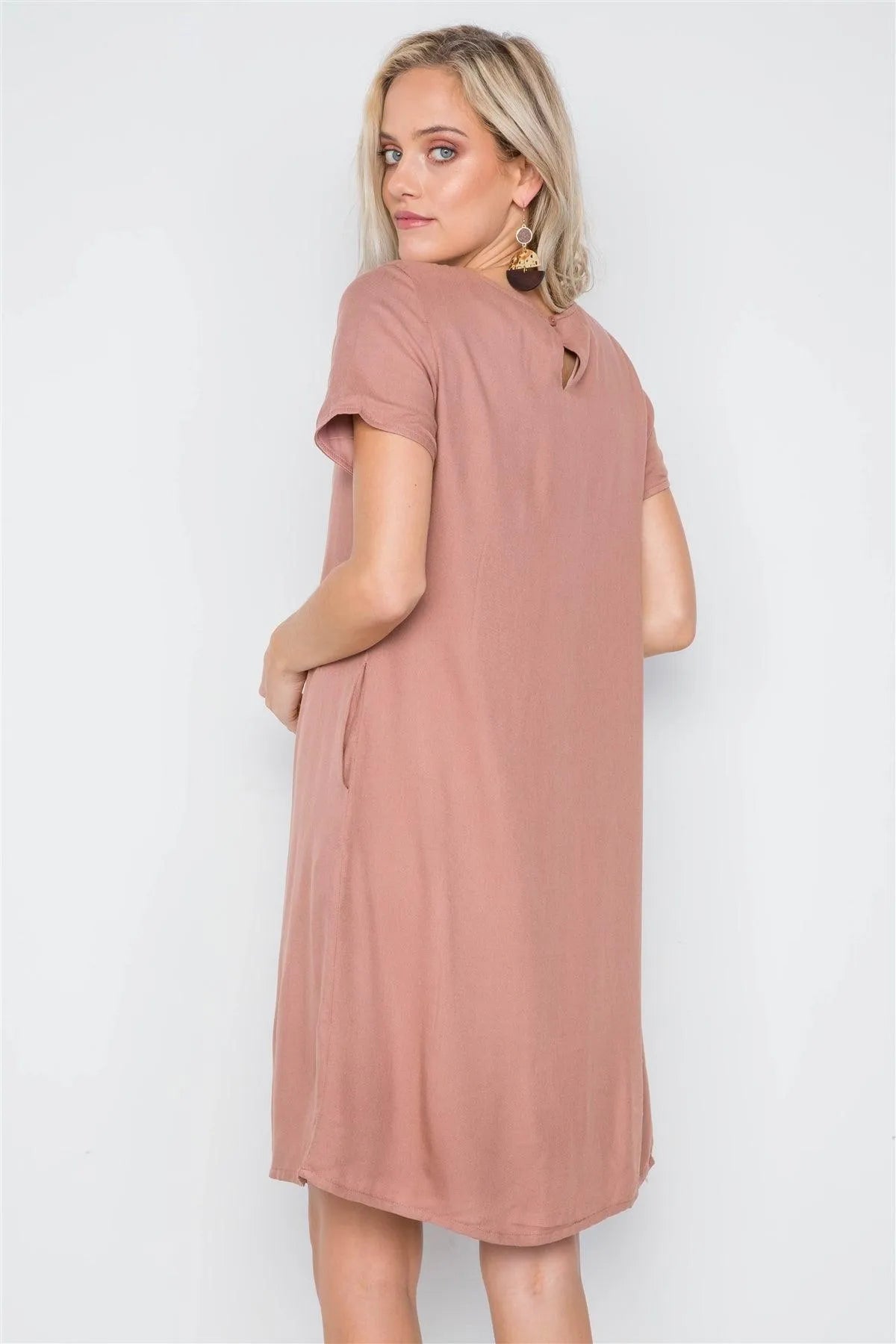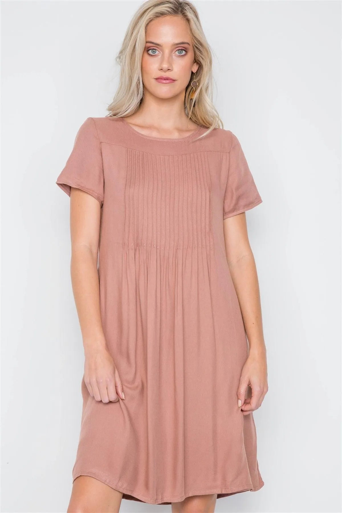 Mauve Short Sleeve Pleated Boho Dress /2-2-2