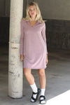 Mauve Textured Collared Long Sleeve Mini Dress /1-2-2
