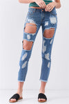 Medium Blue Ripped Destroyed Low-Mid Rise Denim Jeans