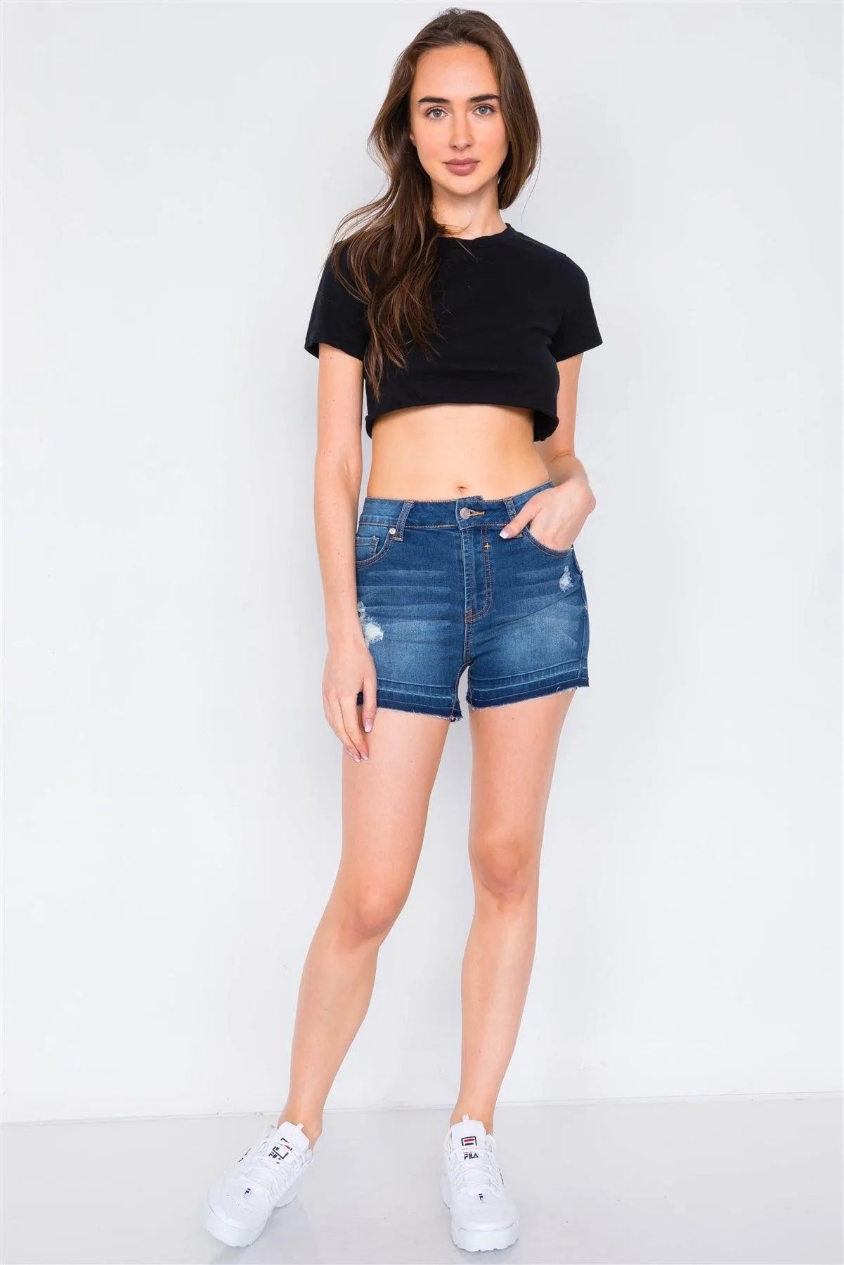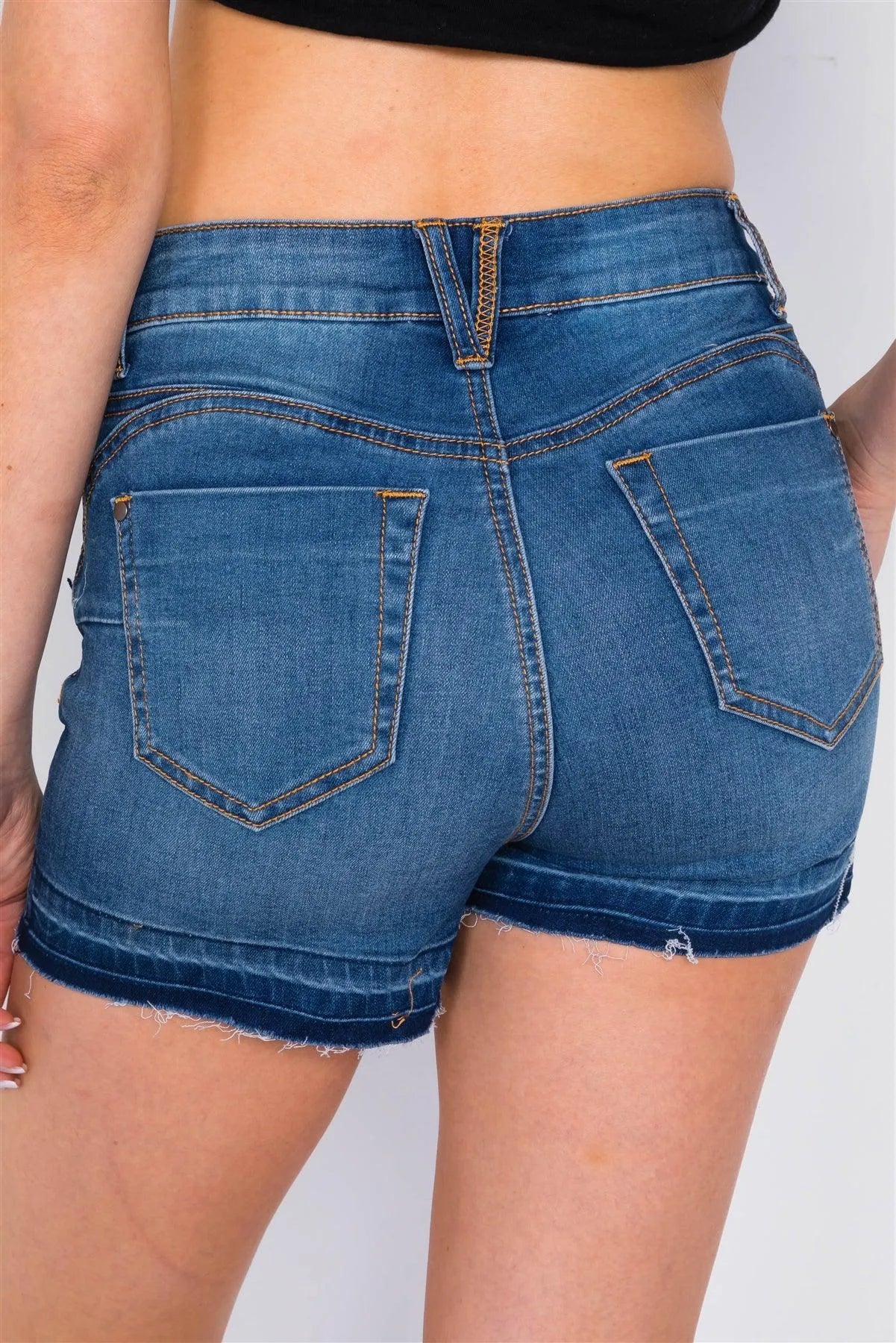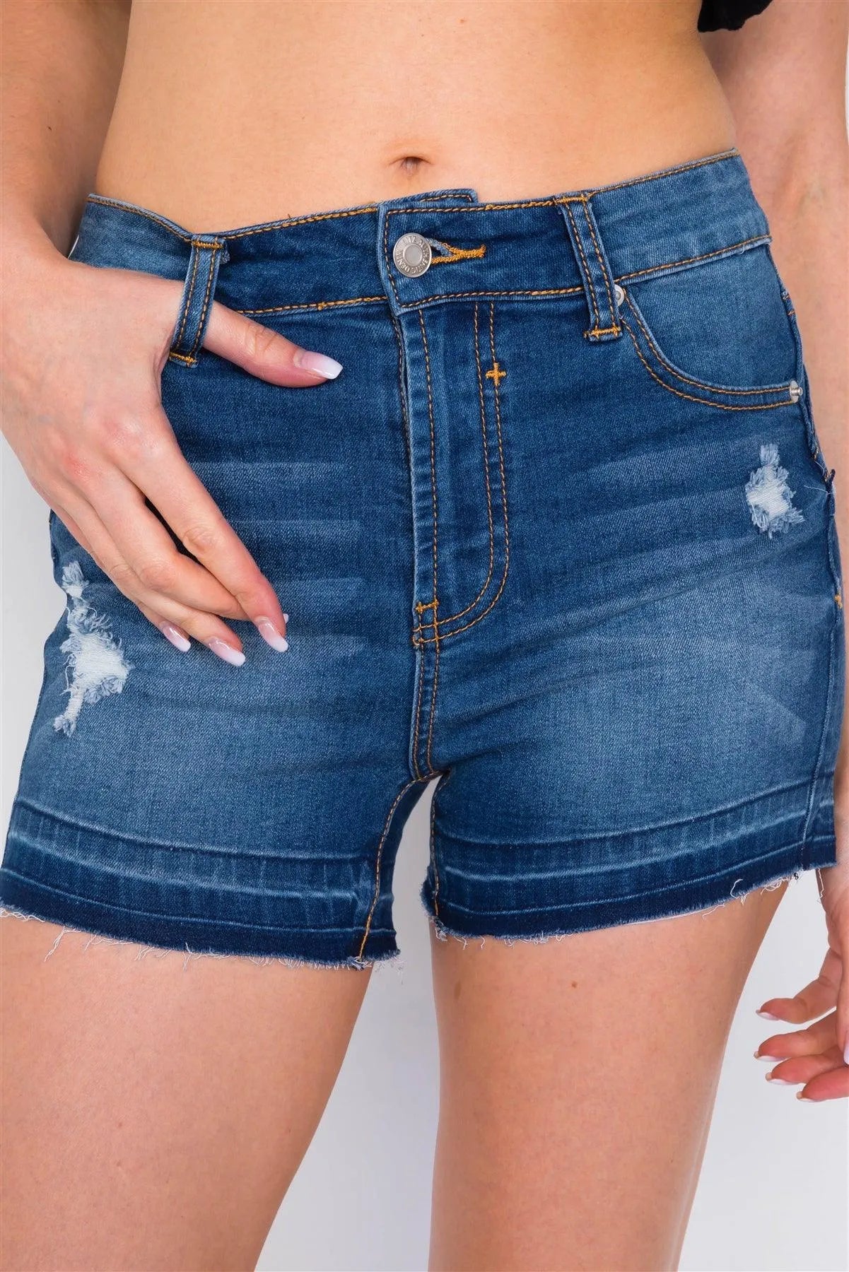 Blue Distressed Frayed Hem Soft Cotton Denim ShortsVendor:Litz La