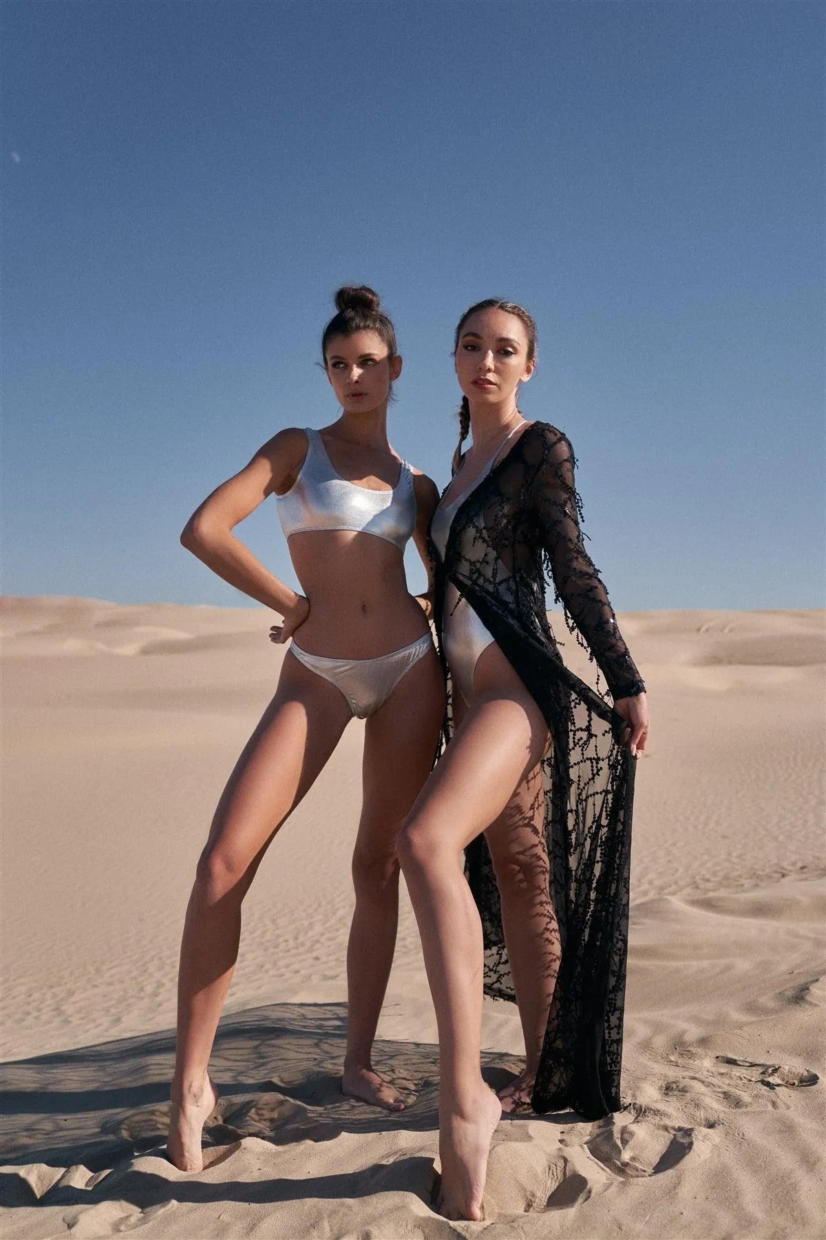 🖤Item Features: Metallic silver, round neckline, open back with self-tie criss-cross strap, high leg, cheeky back, metallic finish, lined, stretchy, hot, sexy, color pop, festival wear, cute, new swimwear collection