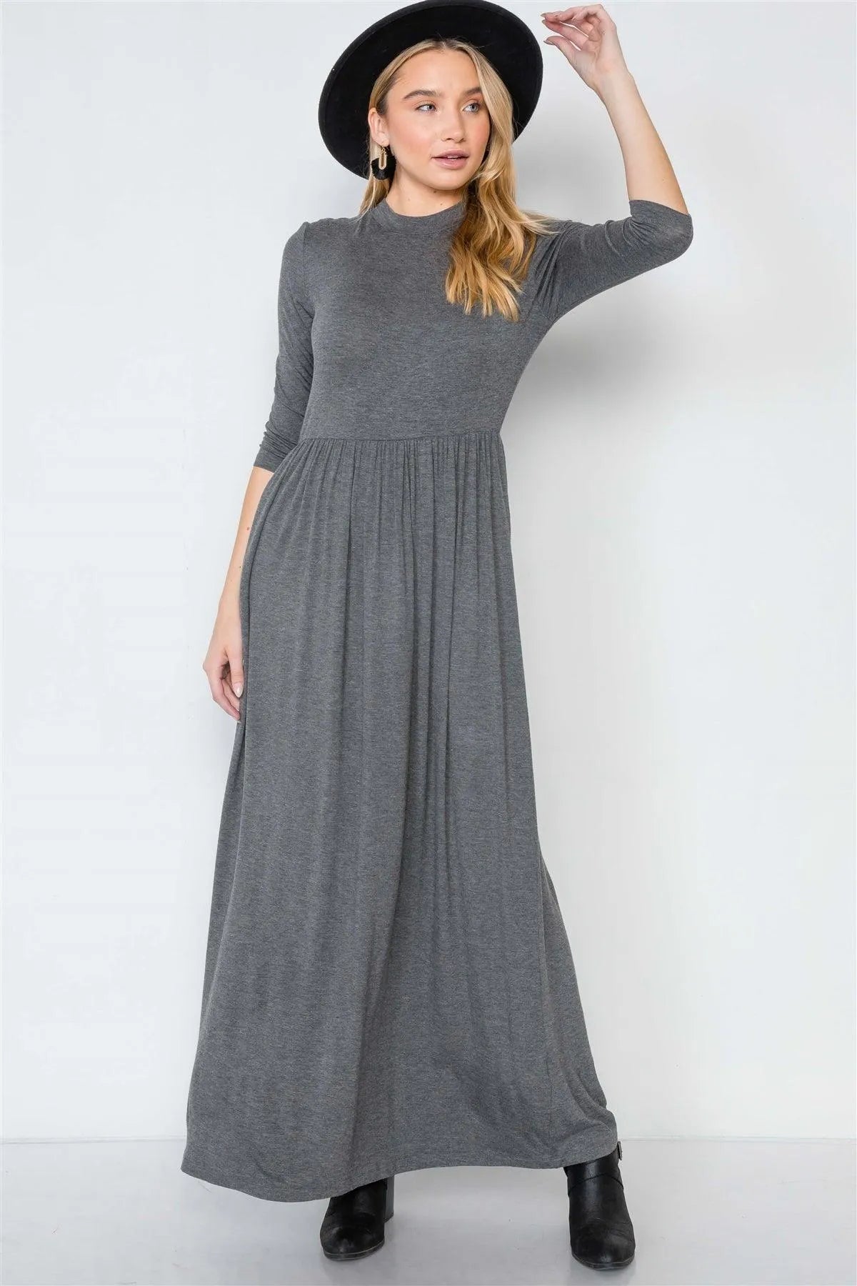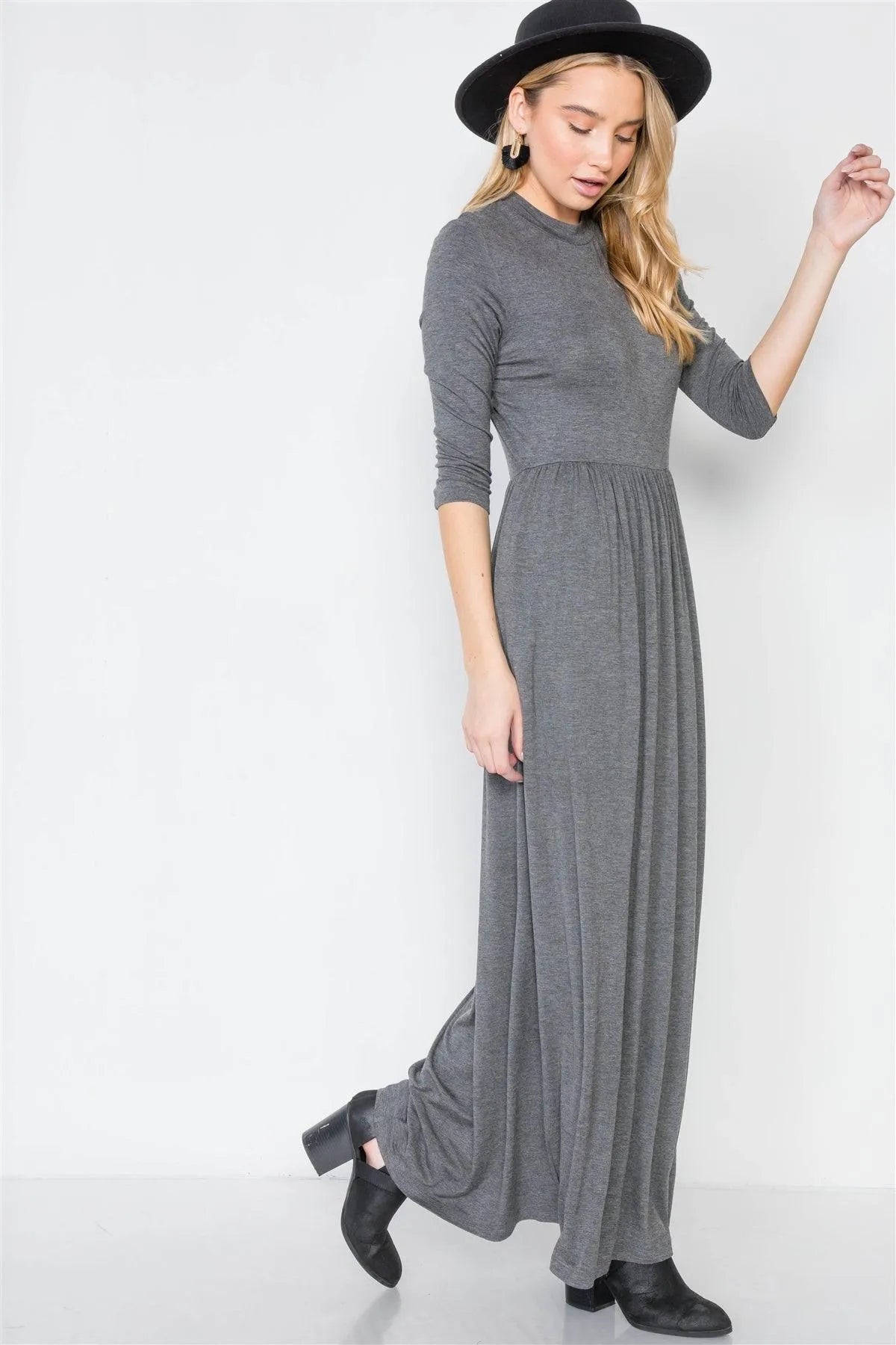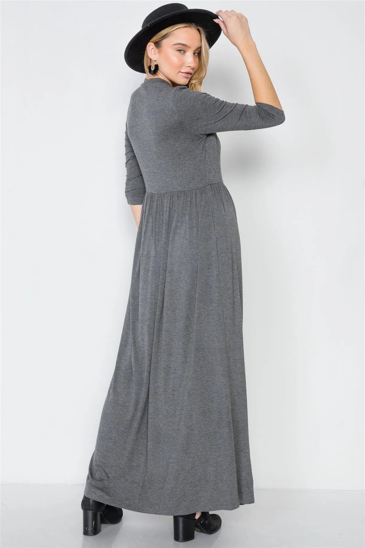 Mid Grey 3/4 Sleeve Basic Maxi Dress /3-3-2