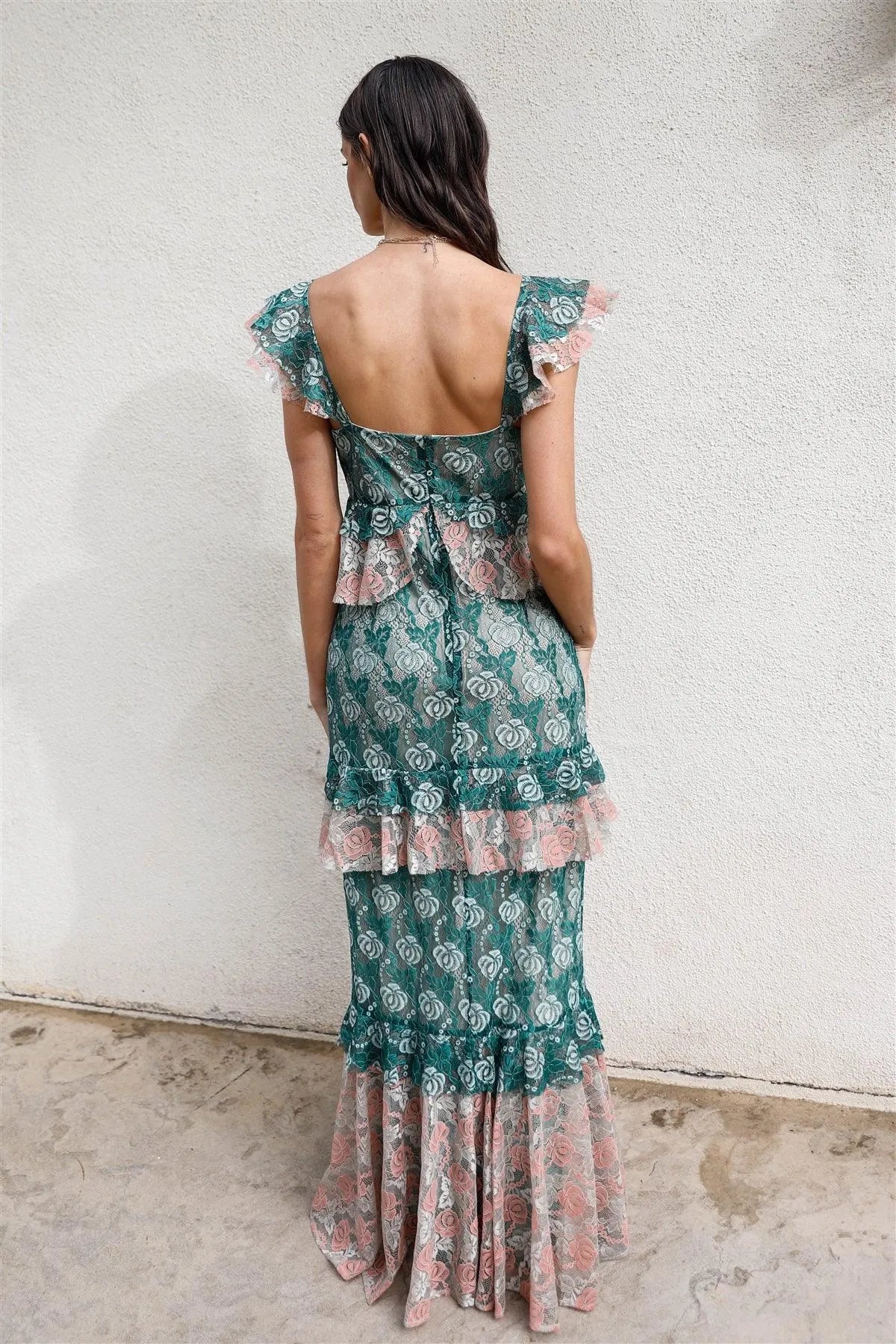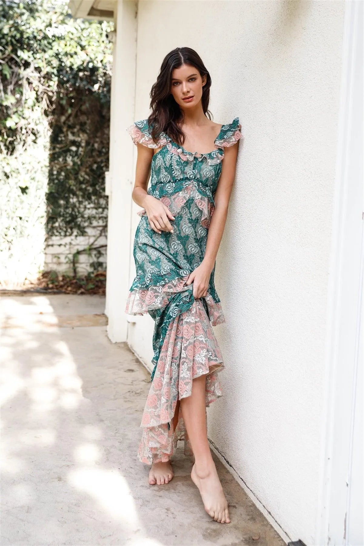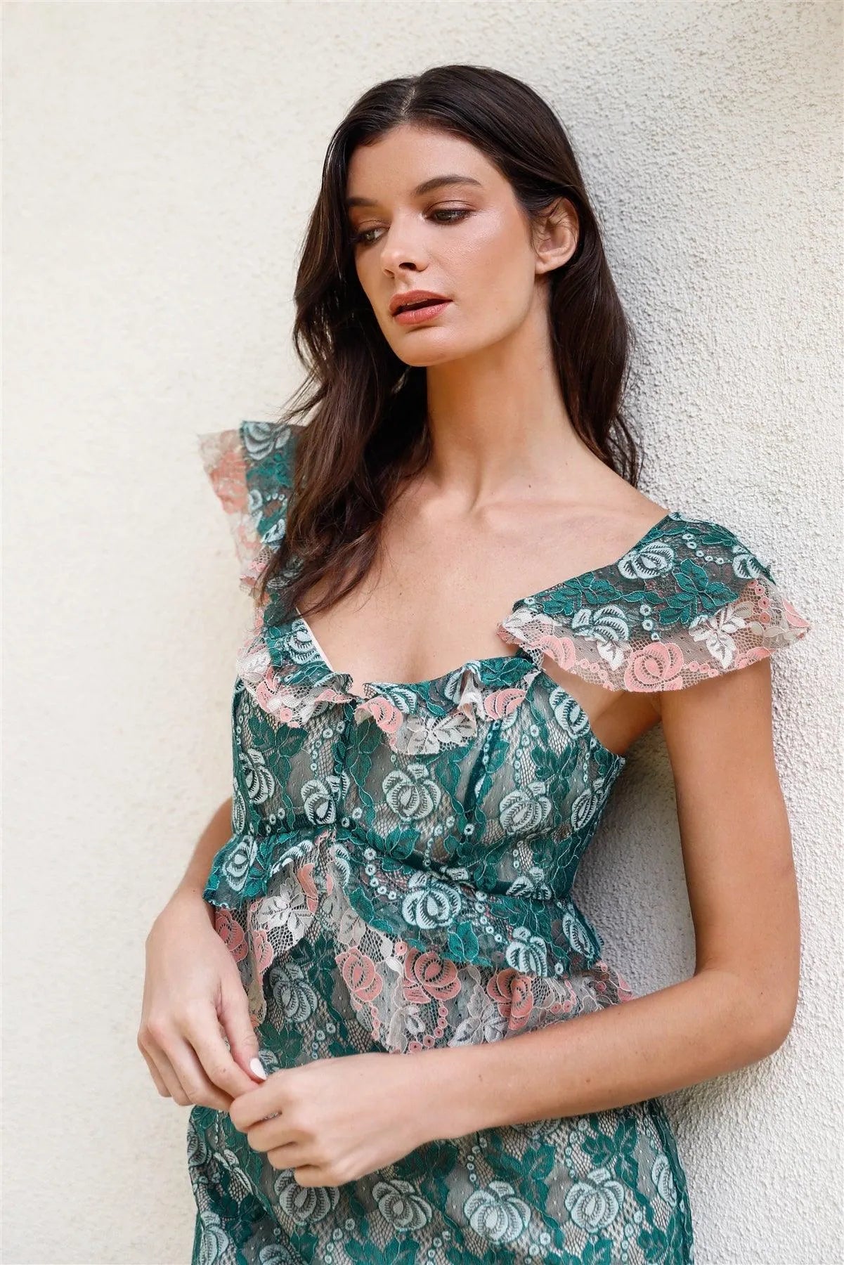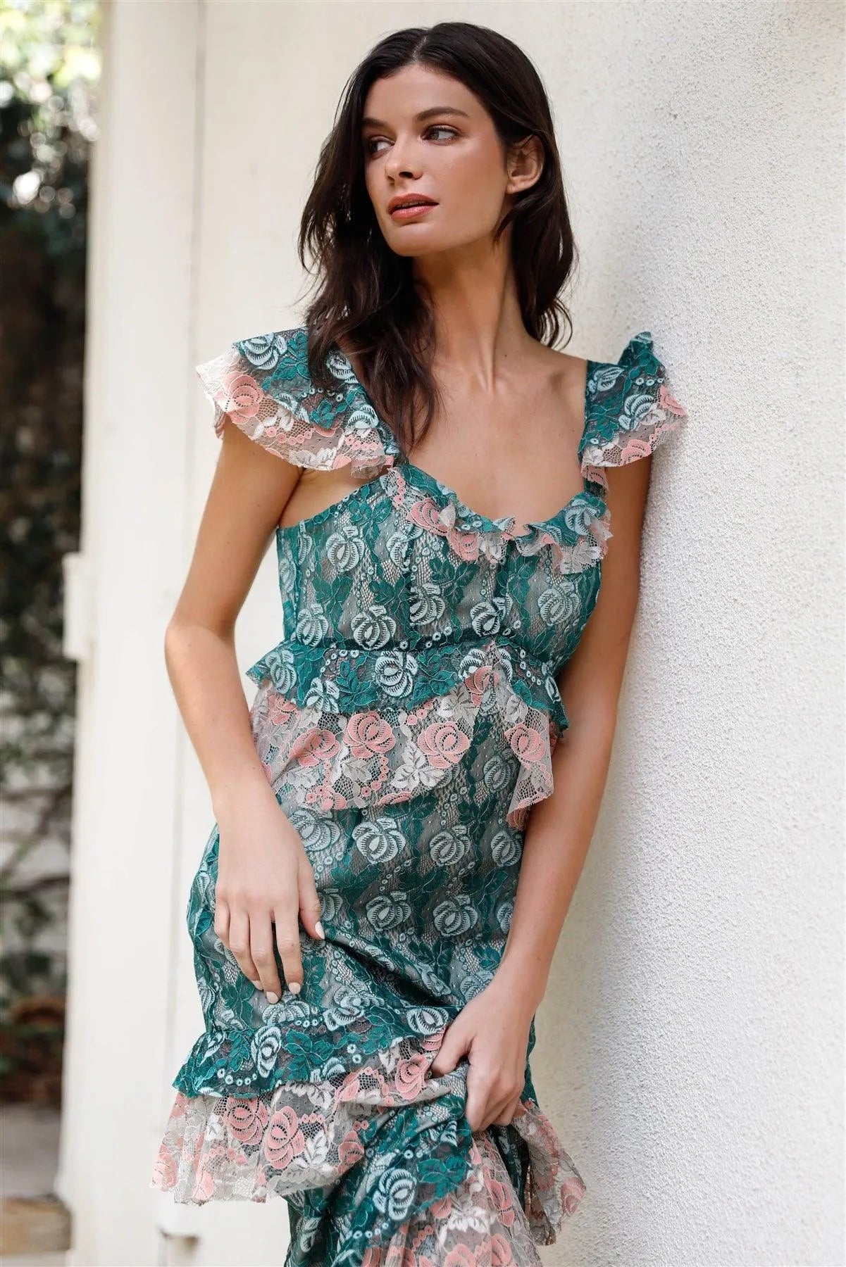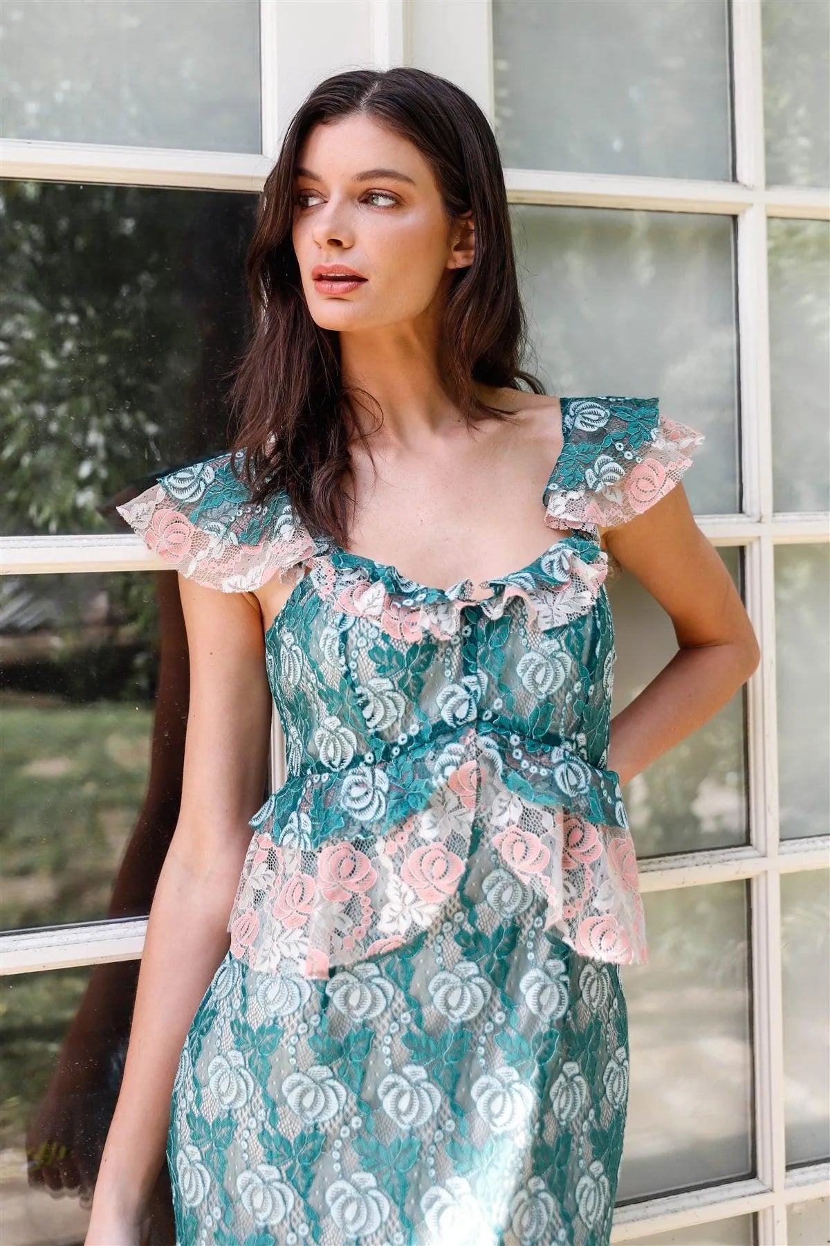 Mint Blush Layered Lace Ruffle Detail Midi Dress /1-2-2-1