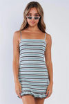 🖤 Item Features: Mint, black, white, striped, sleeveless, adjustable cami straps, ruffled hem, mini length, stretchy, unlined, trendy, 90's style, basic, summer, comfy.