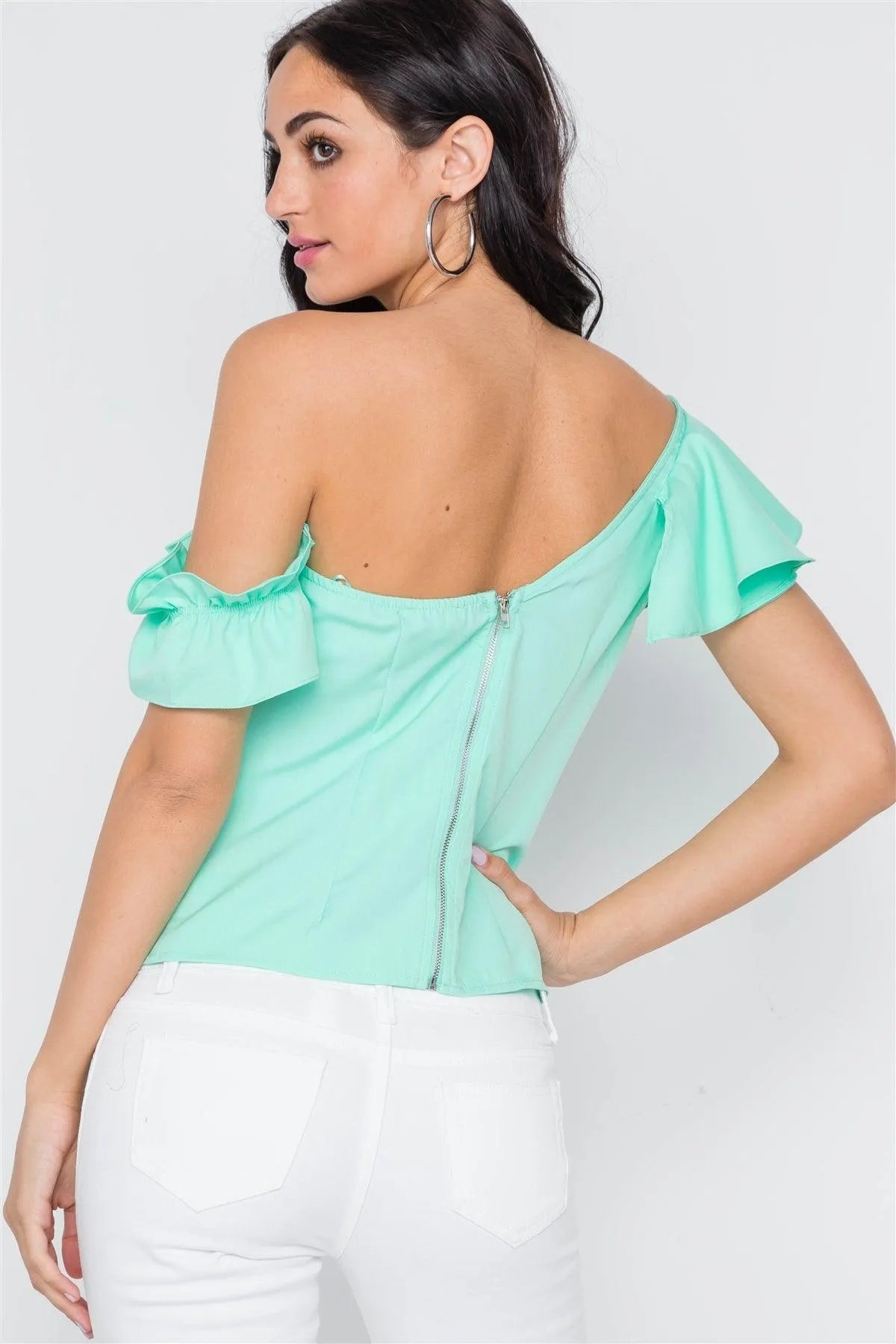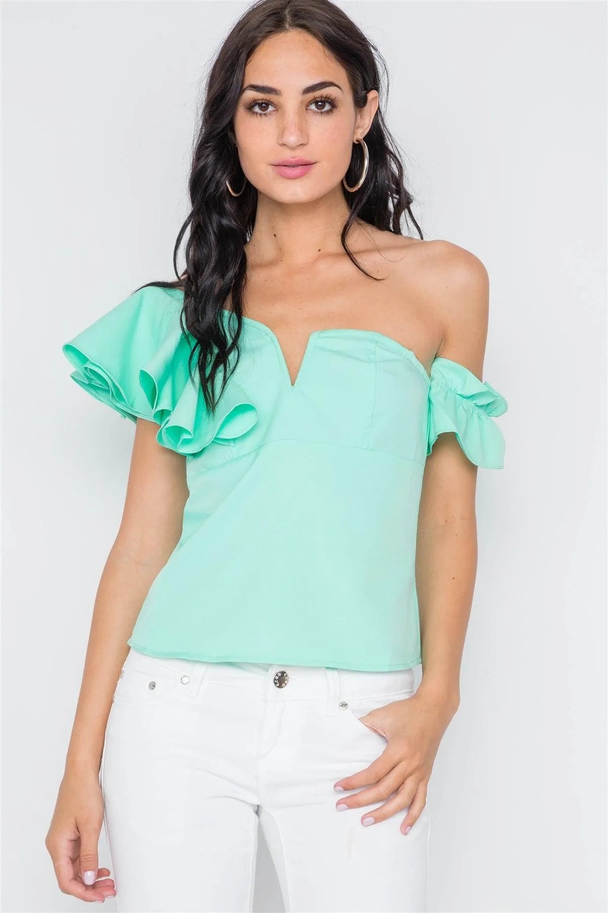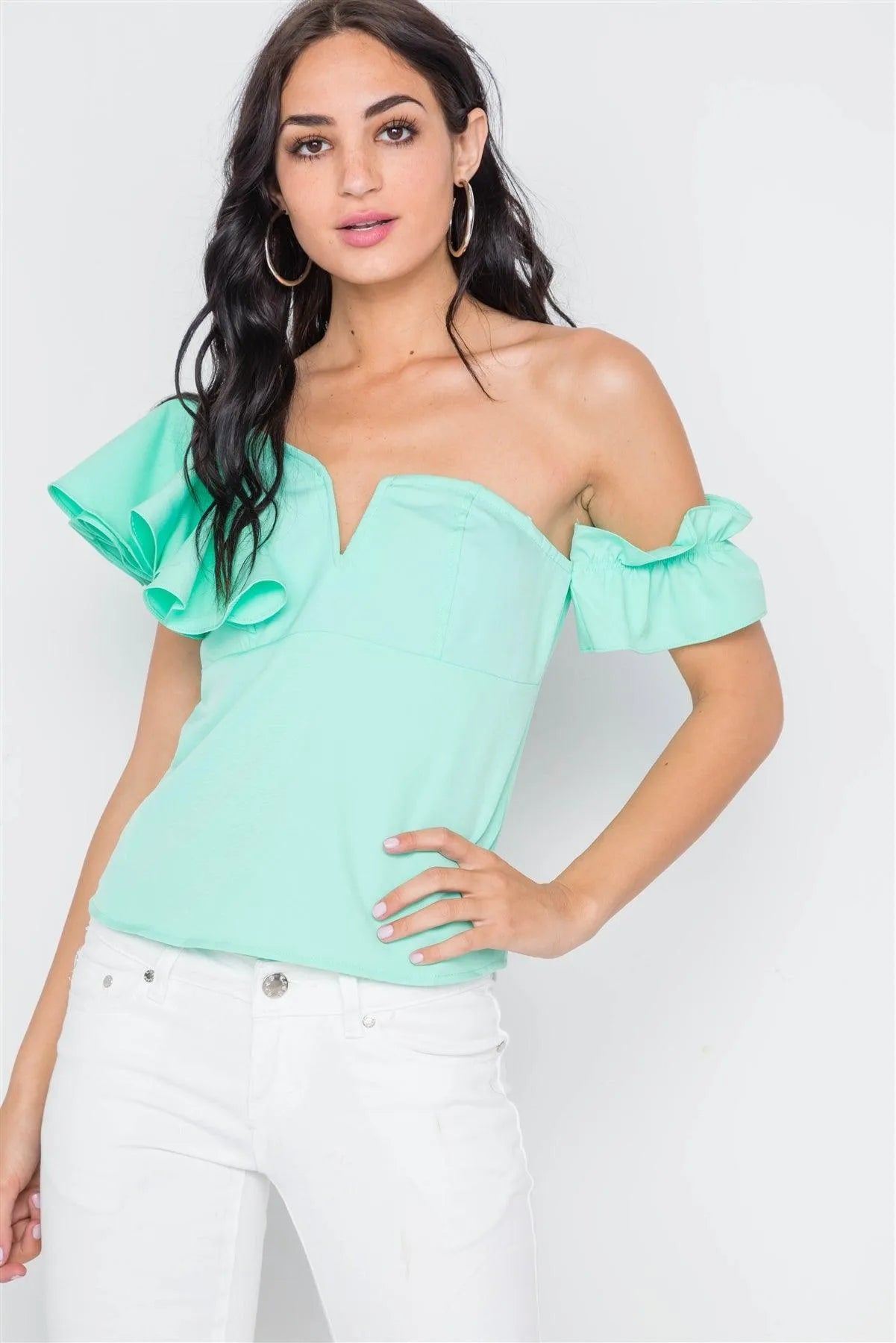 Mint Flounce Shoulder Sweetheart Neck Top /2-2-2