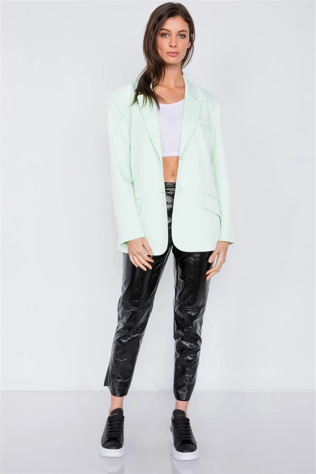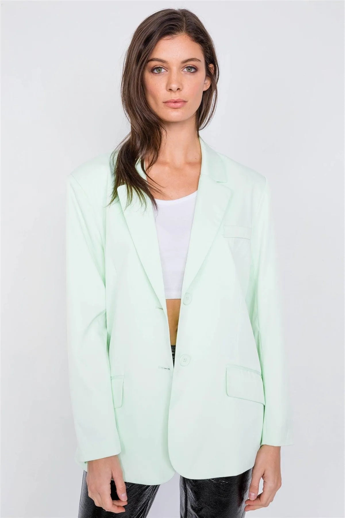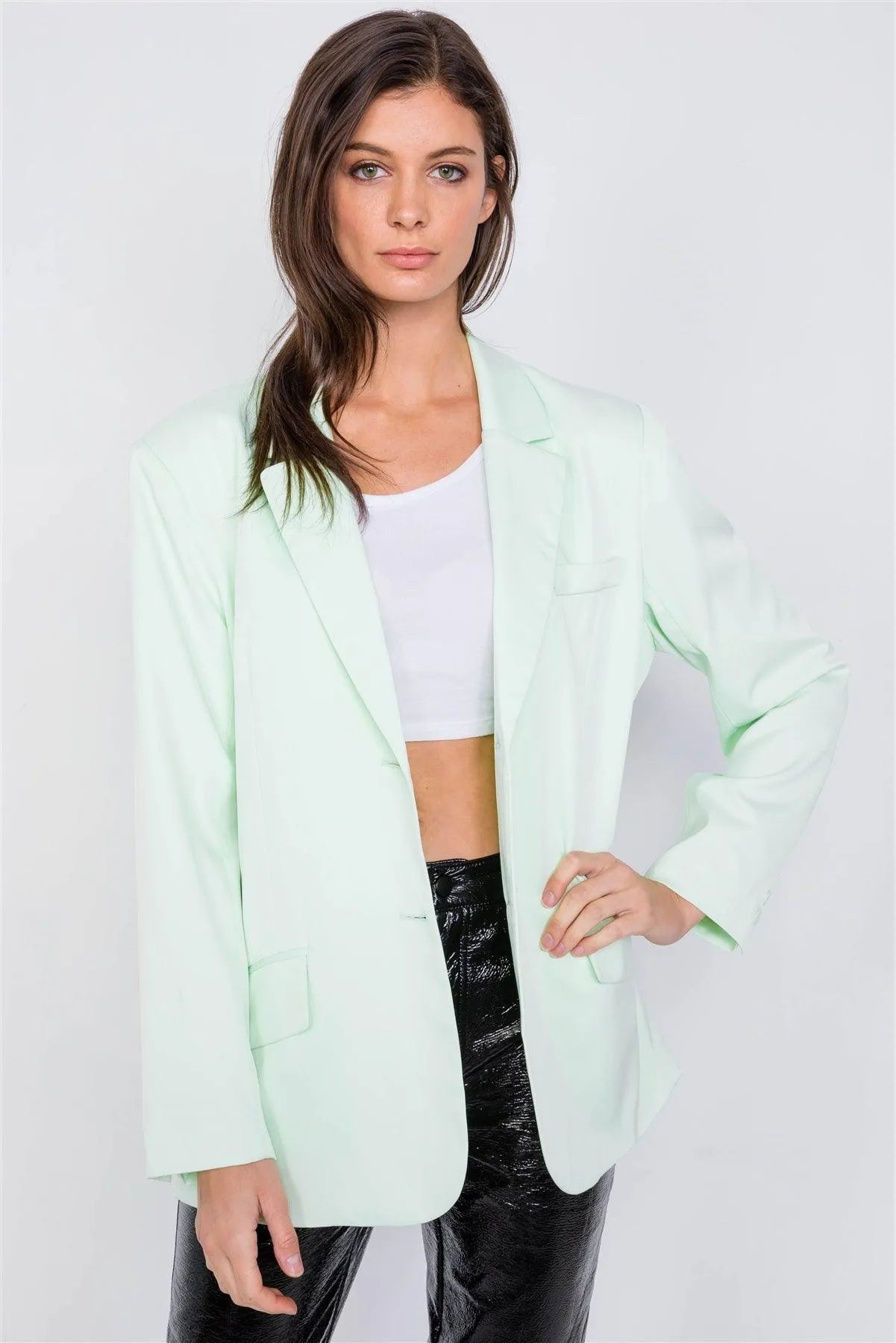 Mint Relaxed Fit Boyfriend Casual Blazer Jacket /3-2-1
