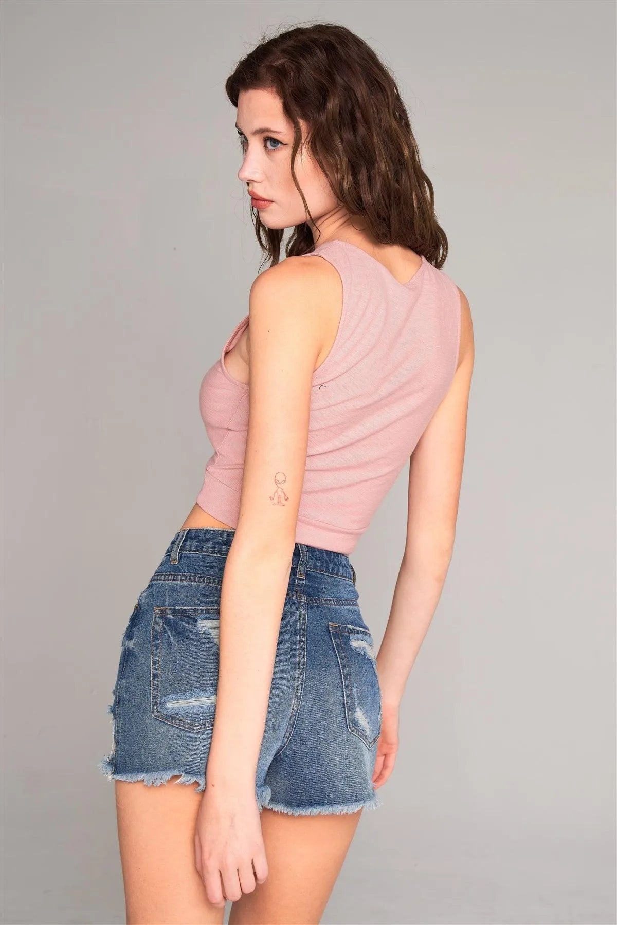 🖤Item Features: Misty rose, solid, sleeveless, crew neckline, self-tie front detail, cropped length, tight fit, unlined, stretchy, non-sheer, basic, casual, comfy, breathable, eco, minimalistic design, spring/summer collection
