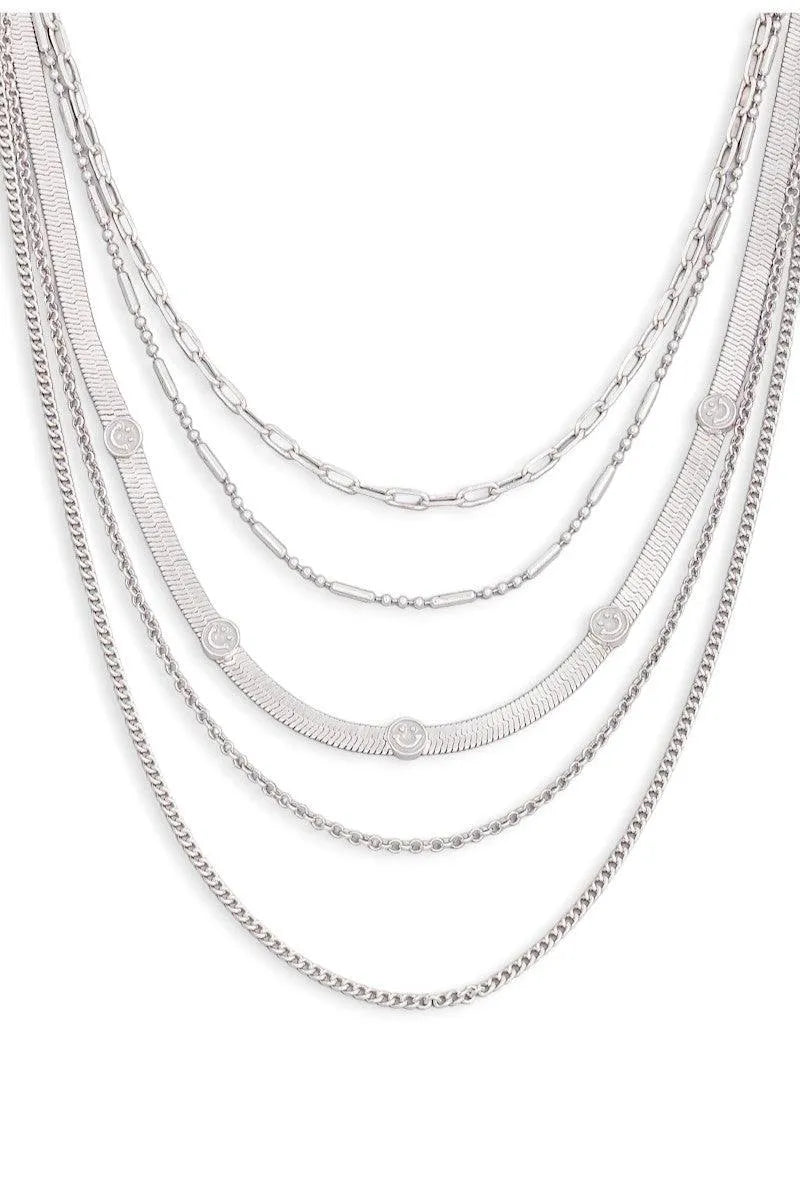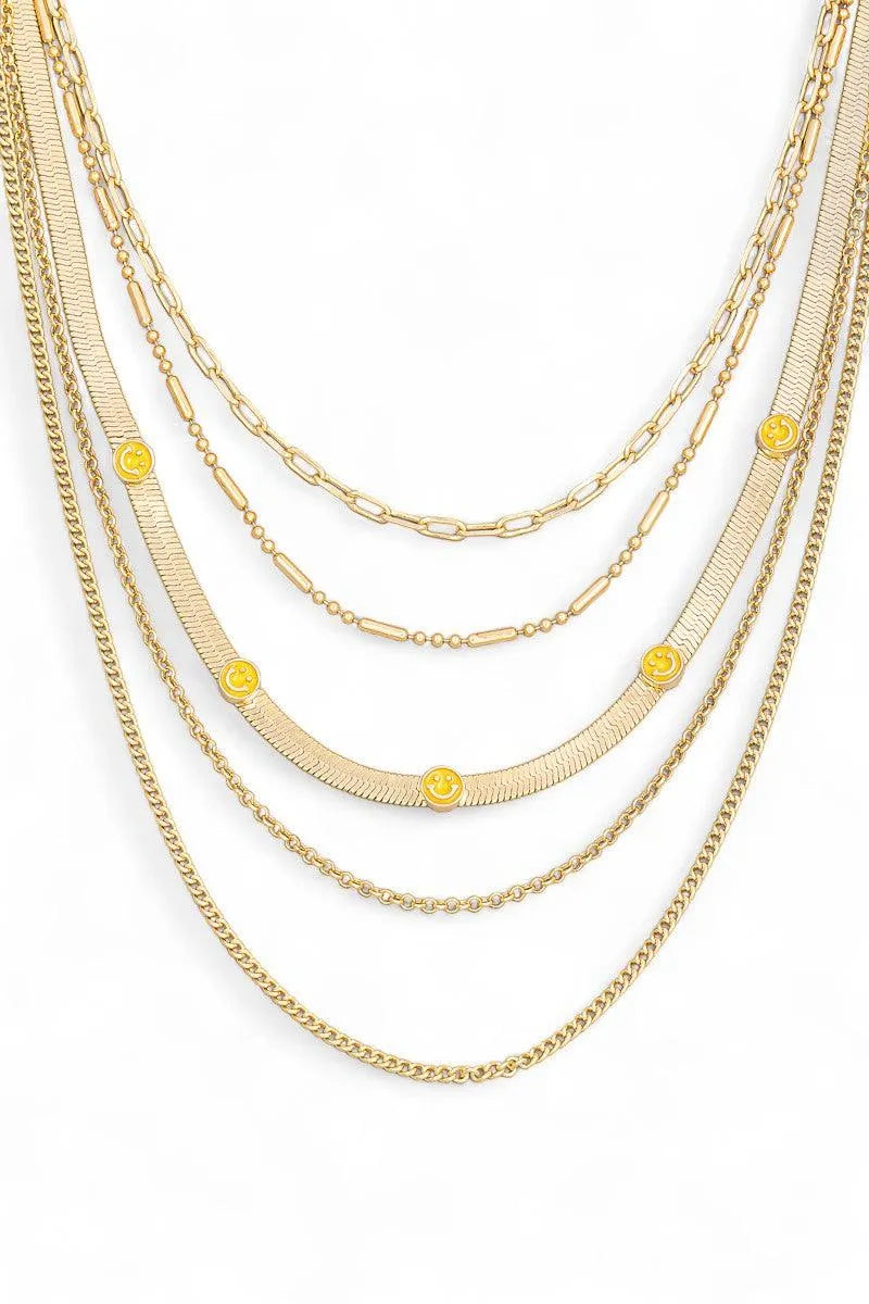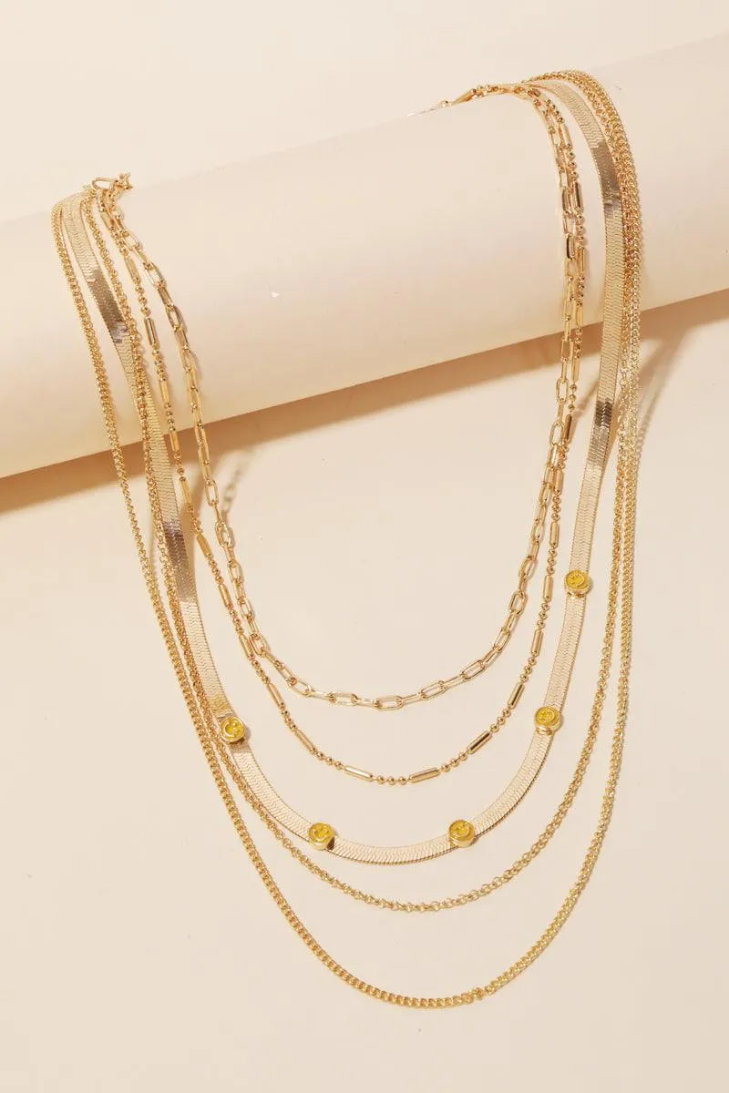 Multi Chain Layered Smiley Pendant Necklace
