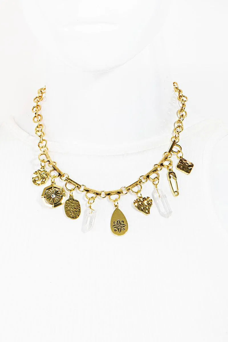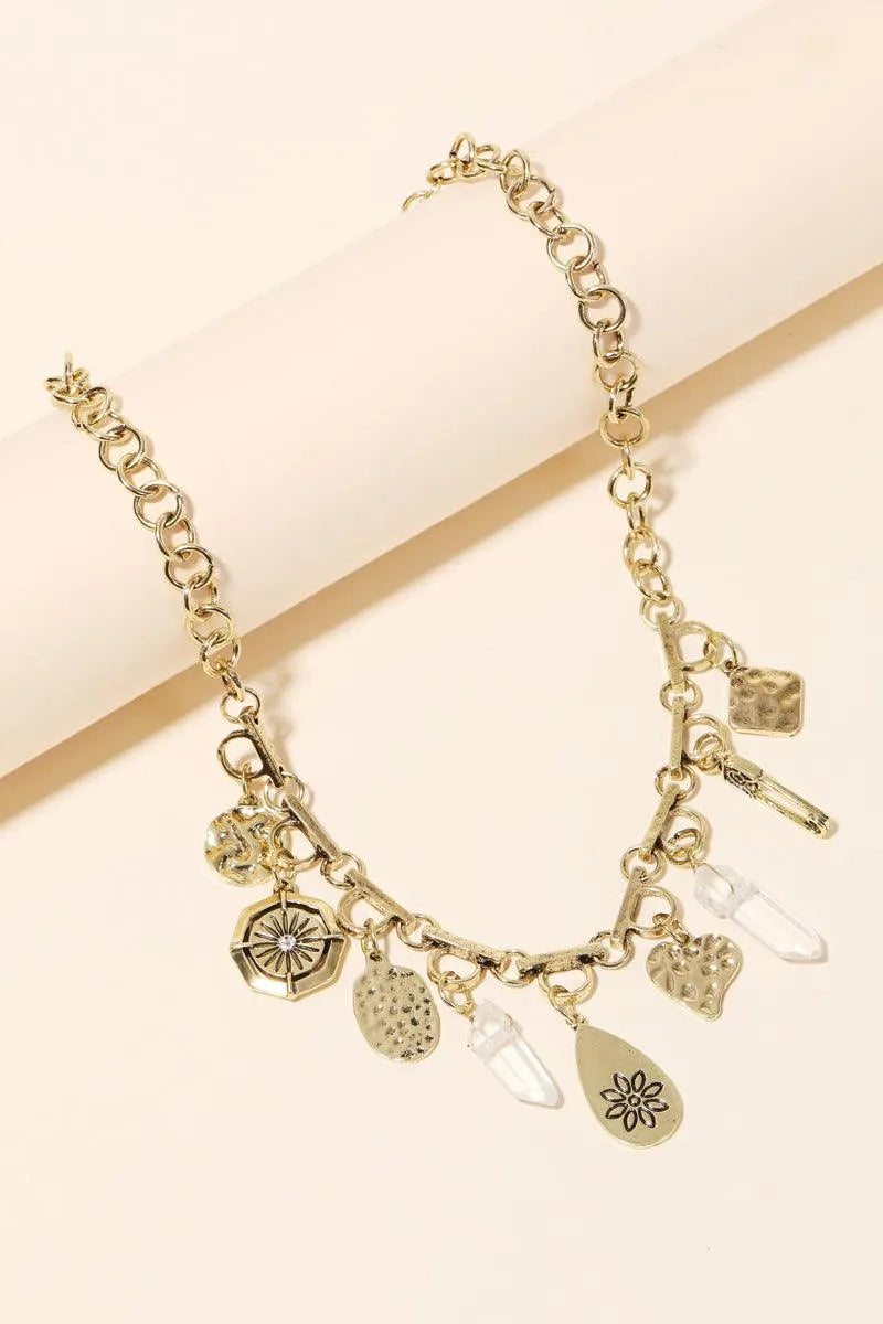 🖤 Add some vintage charm to your jewelry collection with our Vintage Chain Assorted Charm Necklace. Featuring a variety of unique charms on a classic chain, this necklace is sure to bring a quirky and playful touch to any outfit. Perfect for those who don't take themselves too seriously!