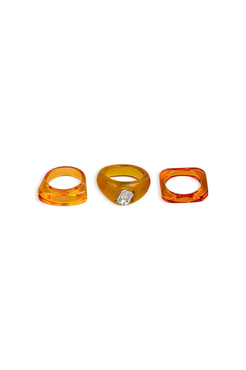 Retro Three Piece Geo Resin Ring Set