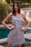 Mocha Sleeveless Crochet Lace Trim Button-Down Back Detail Swing Adjustable Cami Mini Dress /1-2-2-1