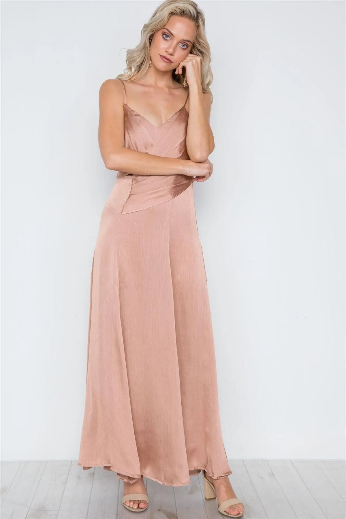 Mocha Layered Cami Side Slit Evening Maxi Dress /1-3-2-1