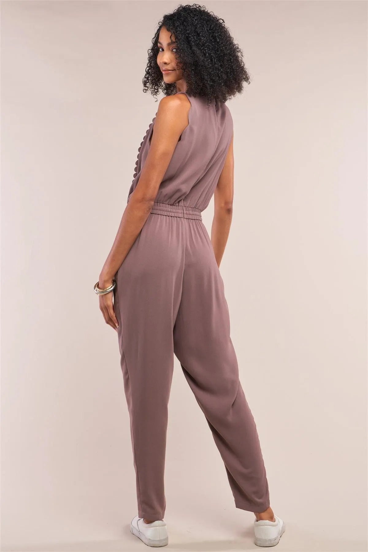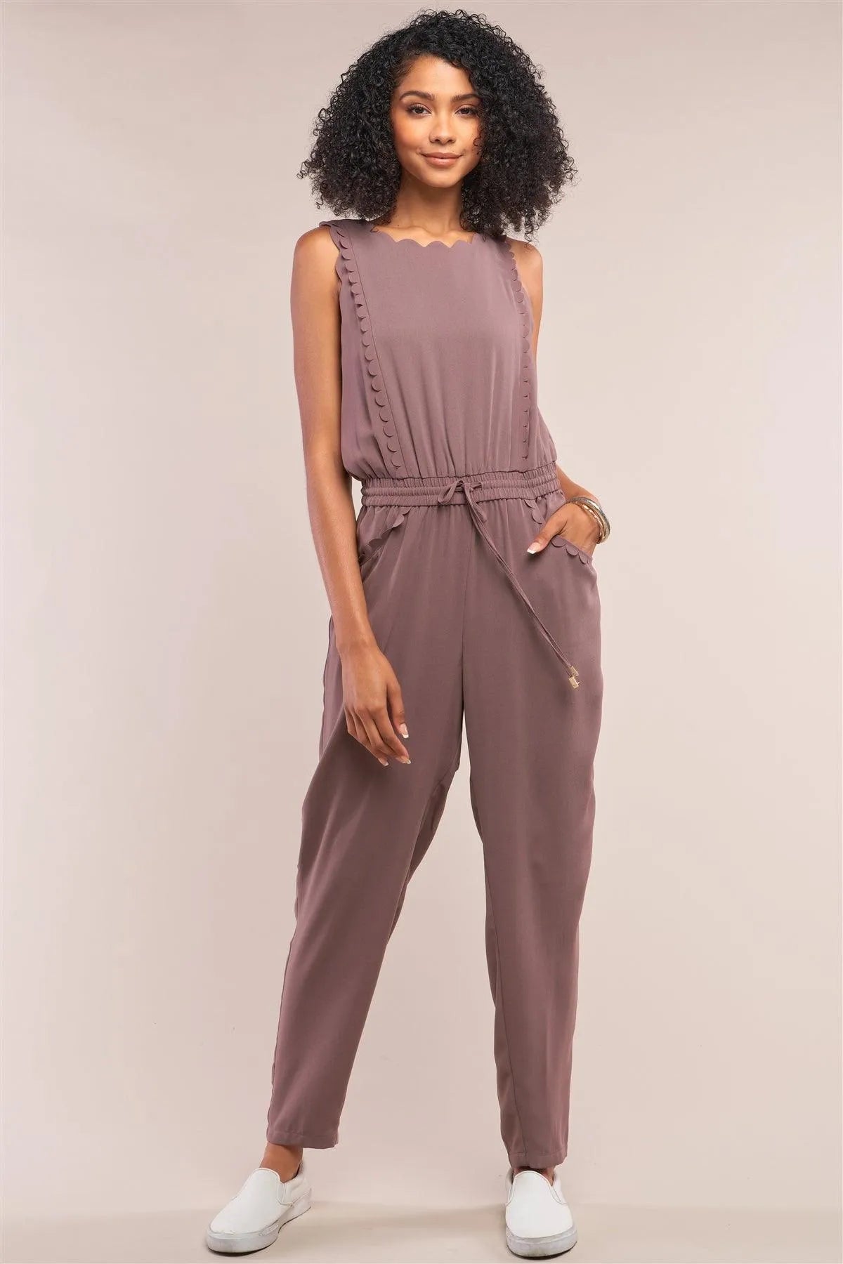 Winona Mocha Sleeveless Self-Tie Waist Scallop Hem Detail Jumpsuit /2-1-3