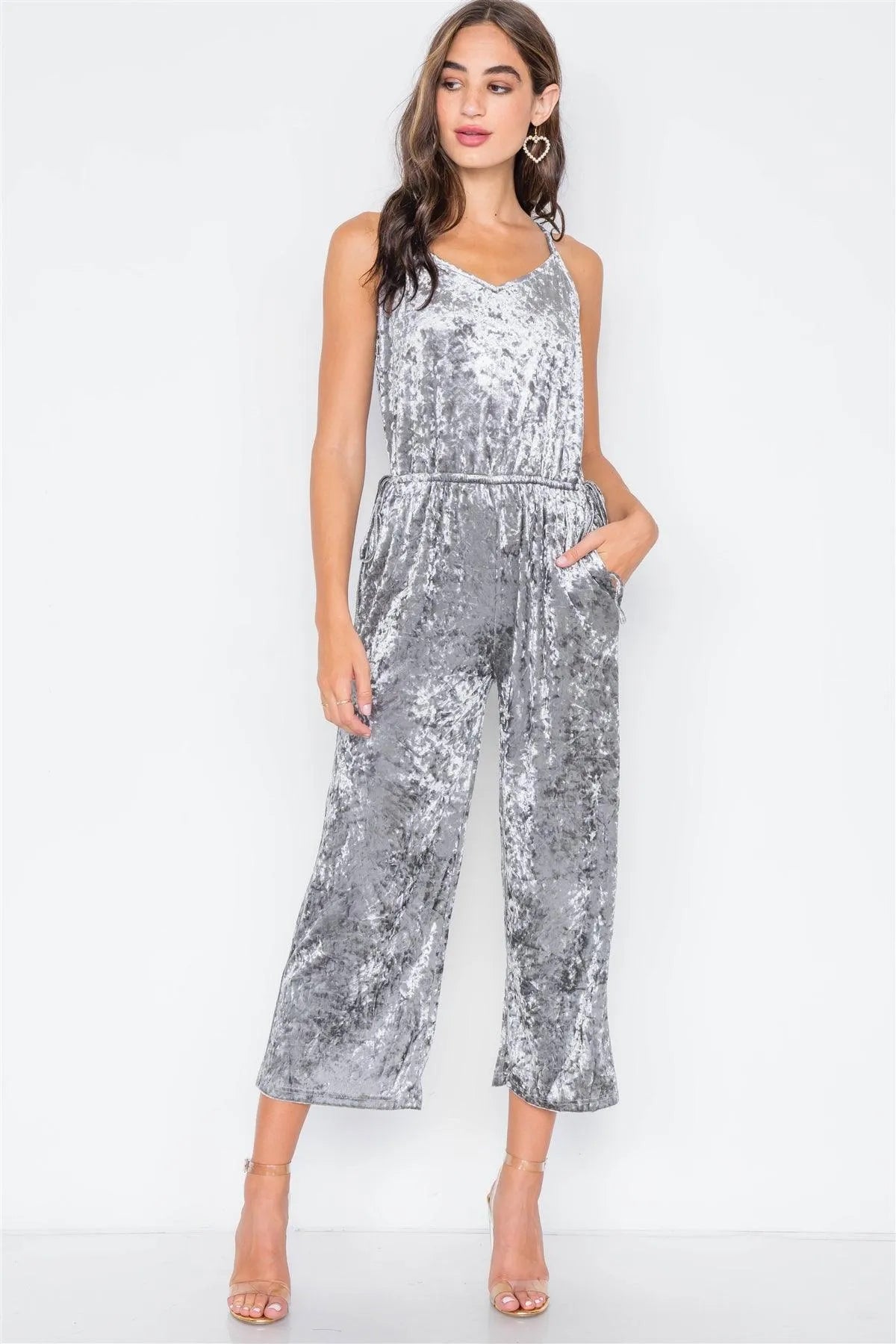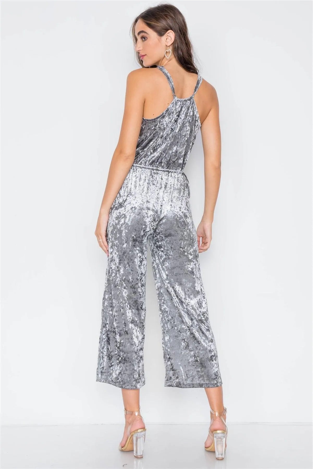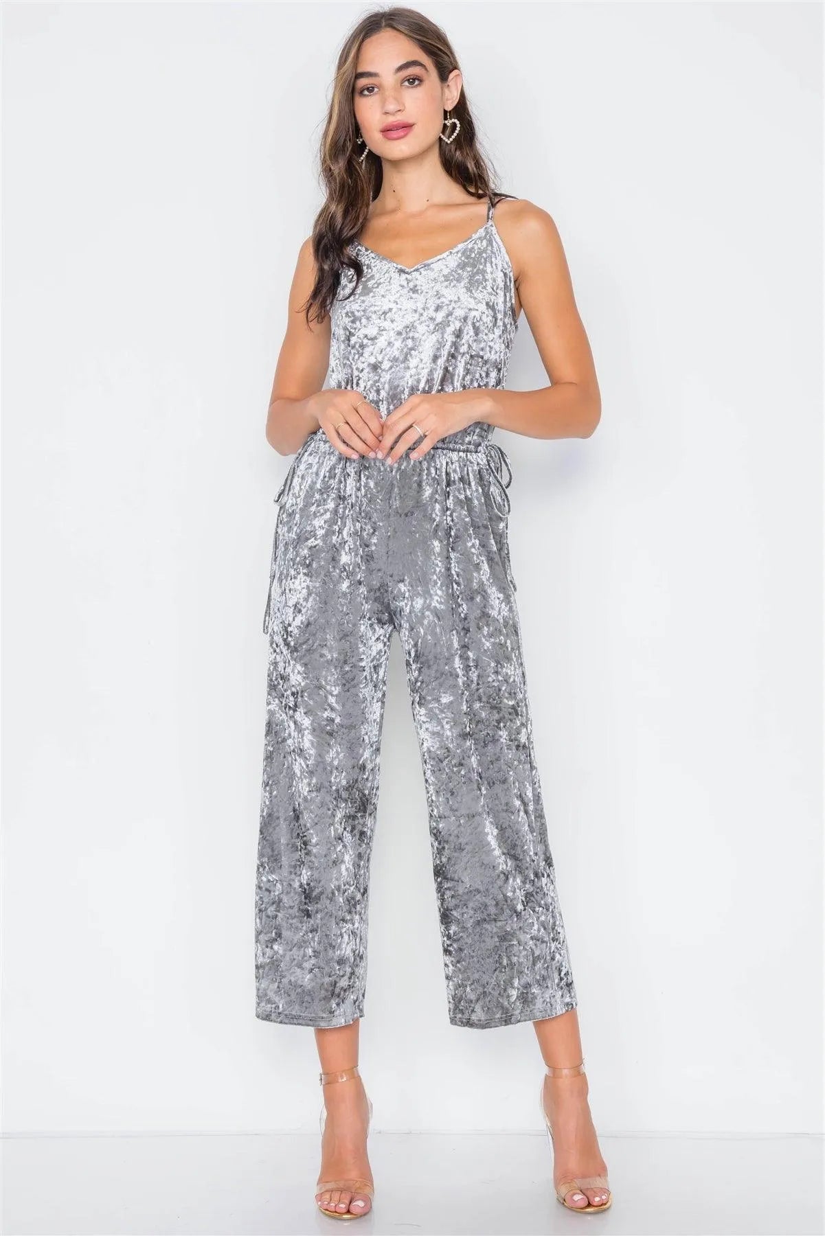 Moon Dust Crushed Velvet V-neck Wide Leg Jumpsuit / 3-2-1