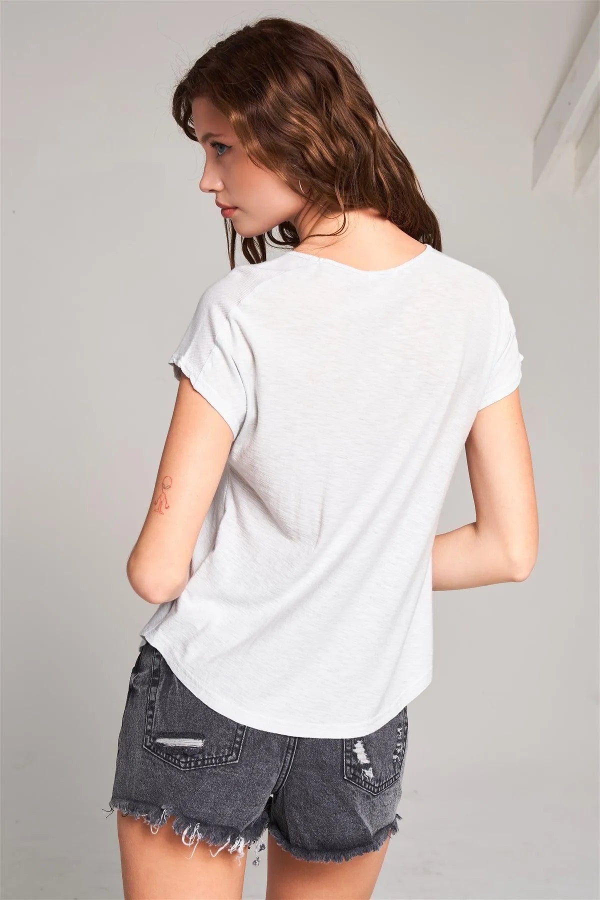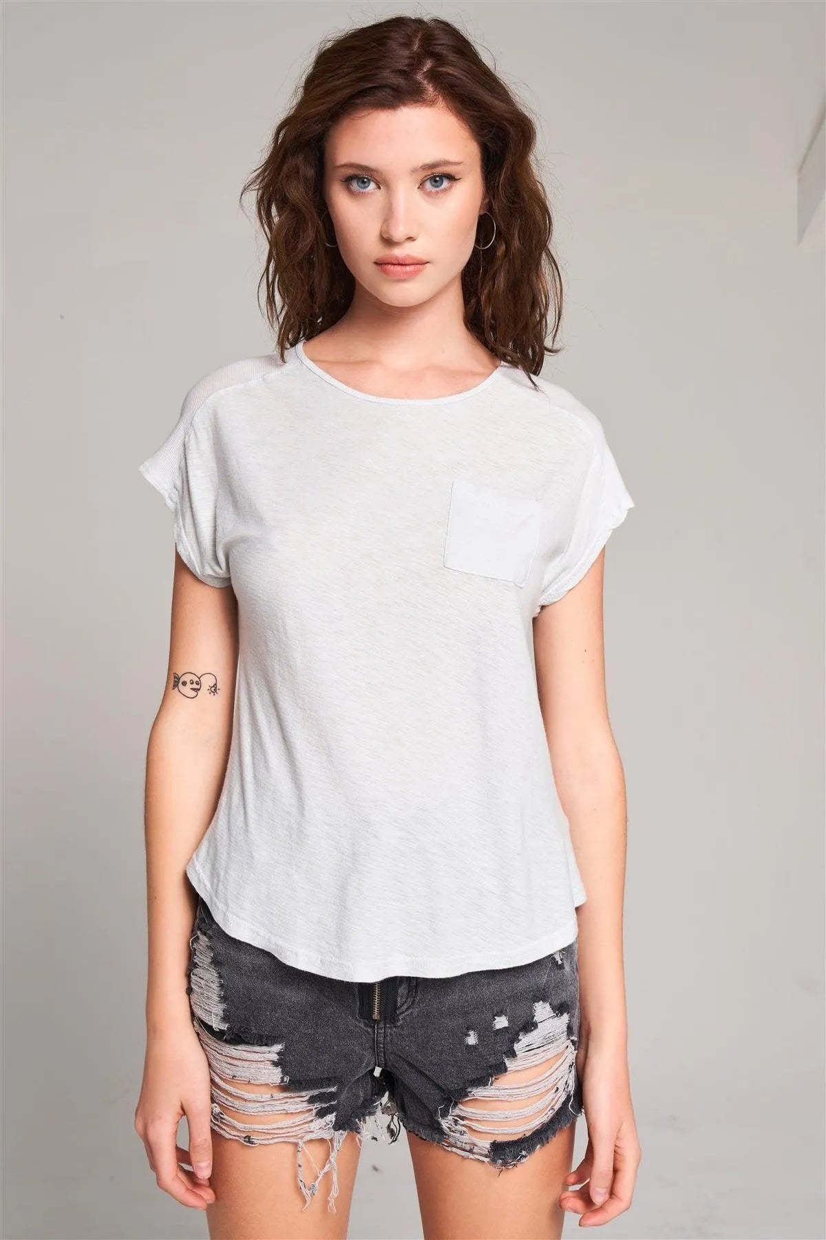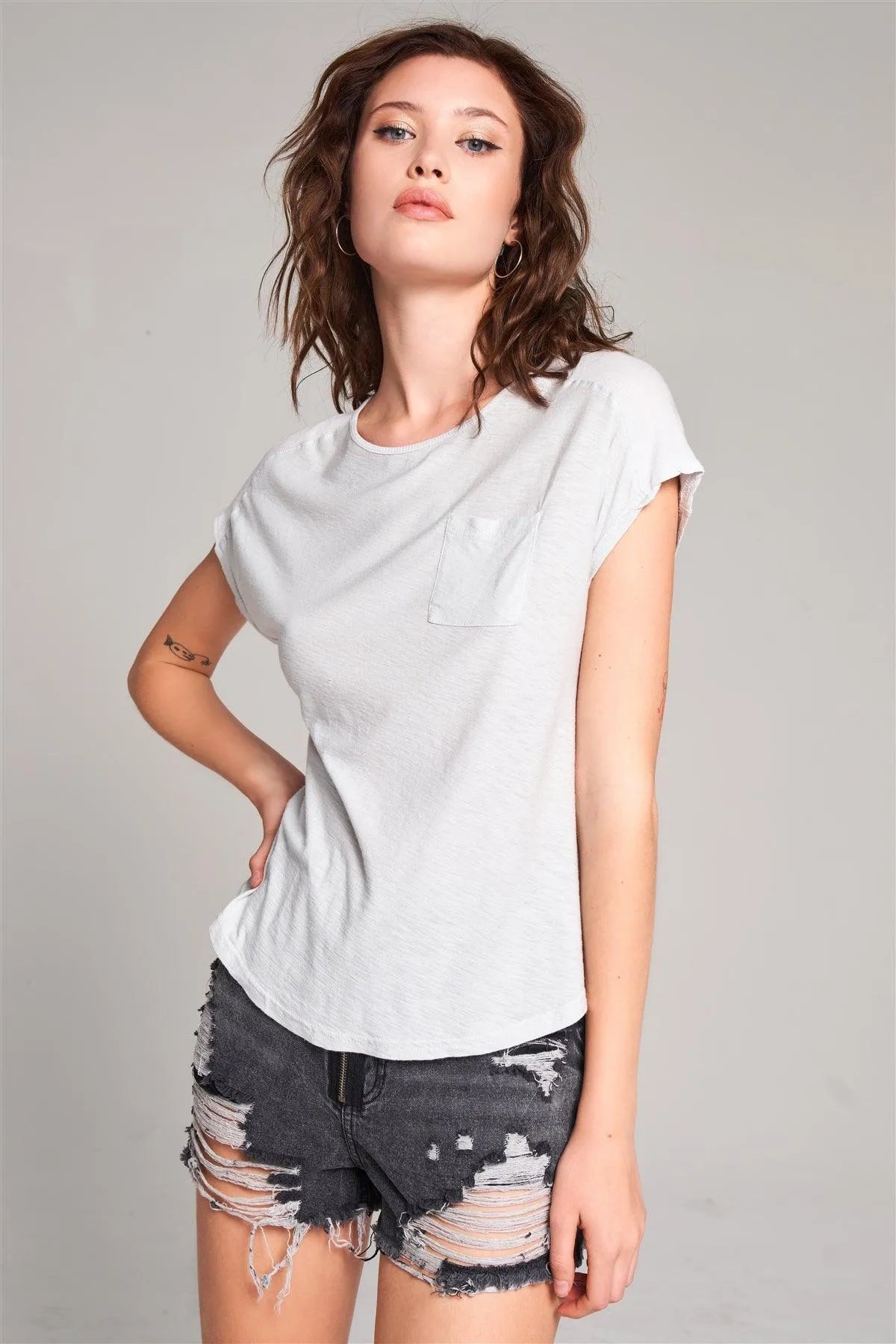 Moonshine Grey Ribbed Shoulder Round Neck Chest Pocket Detail Relaxed Tee
