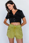 Moss Green Washed High Rise Raw Hem Shorts /3-2-1