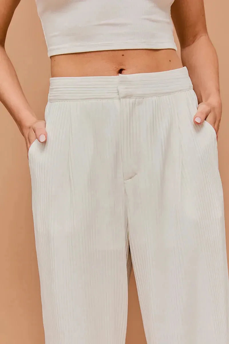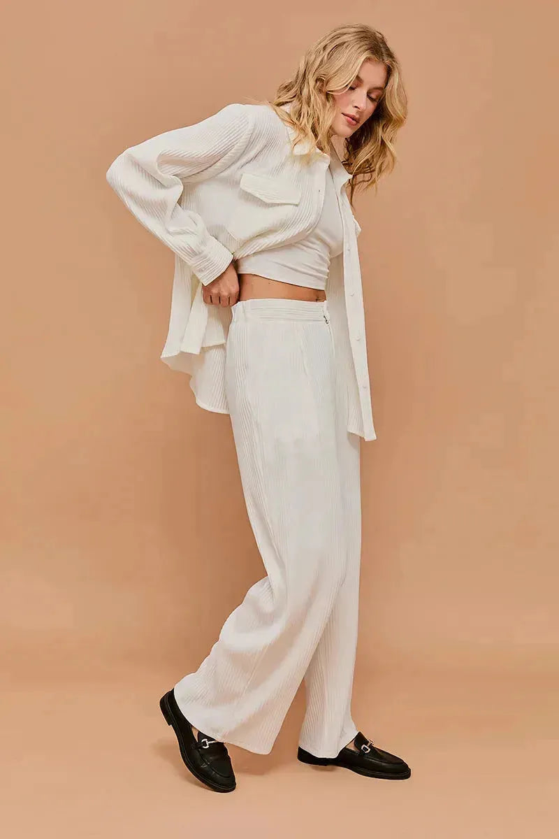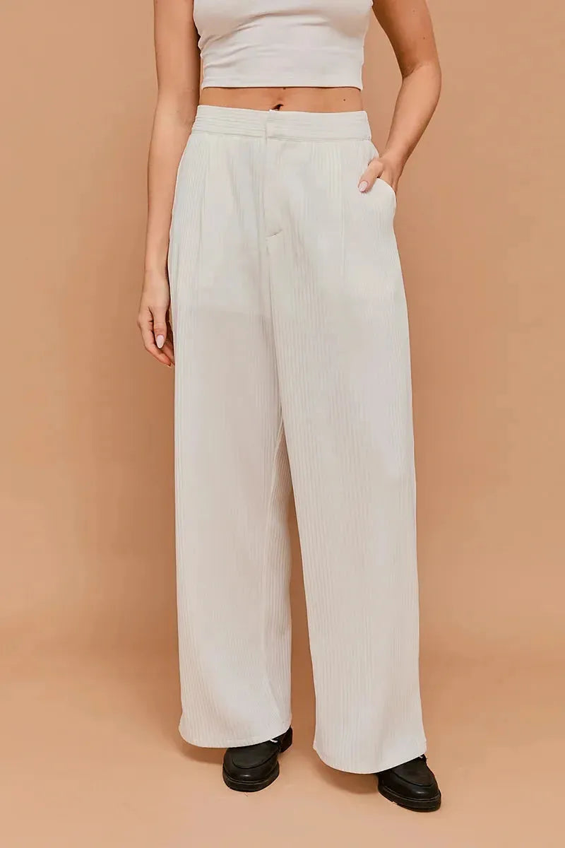 Indulge in the sophistication and exclusivity of our Stripe Texture Wide Pants. Elevate your style with the unique striped texture that adds a touch of artistry to your look. These wide pants offer a luxurious and comfortable fit, making them the perfect addition to your wardrobe.